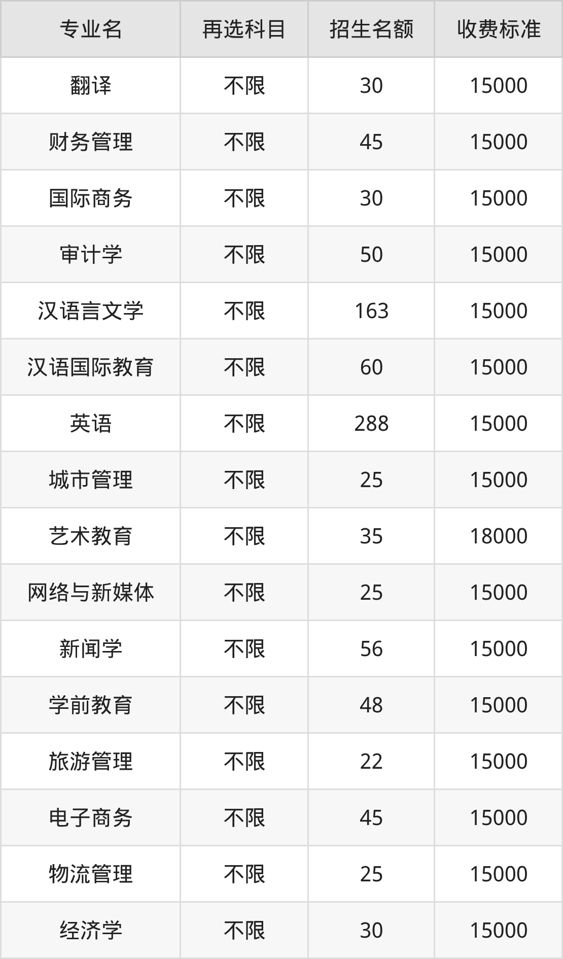 12.国际经济与贸易:学费是15000元