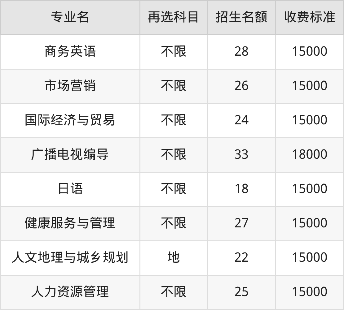 | 本科批 | 物理 | 人力资源管理 | 15 |
