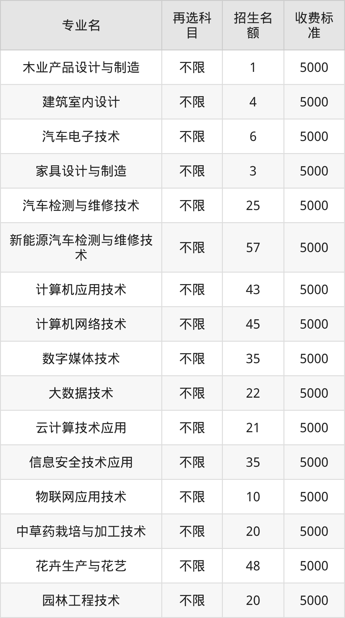 一、云南林业职业技术学院各专业收费标准