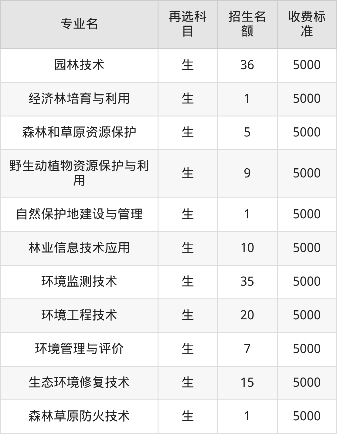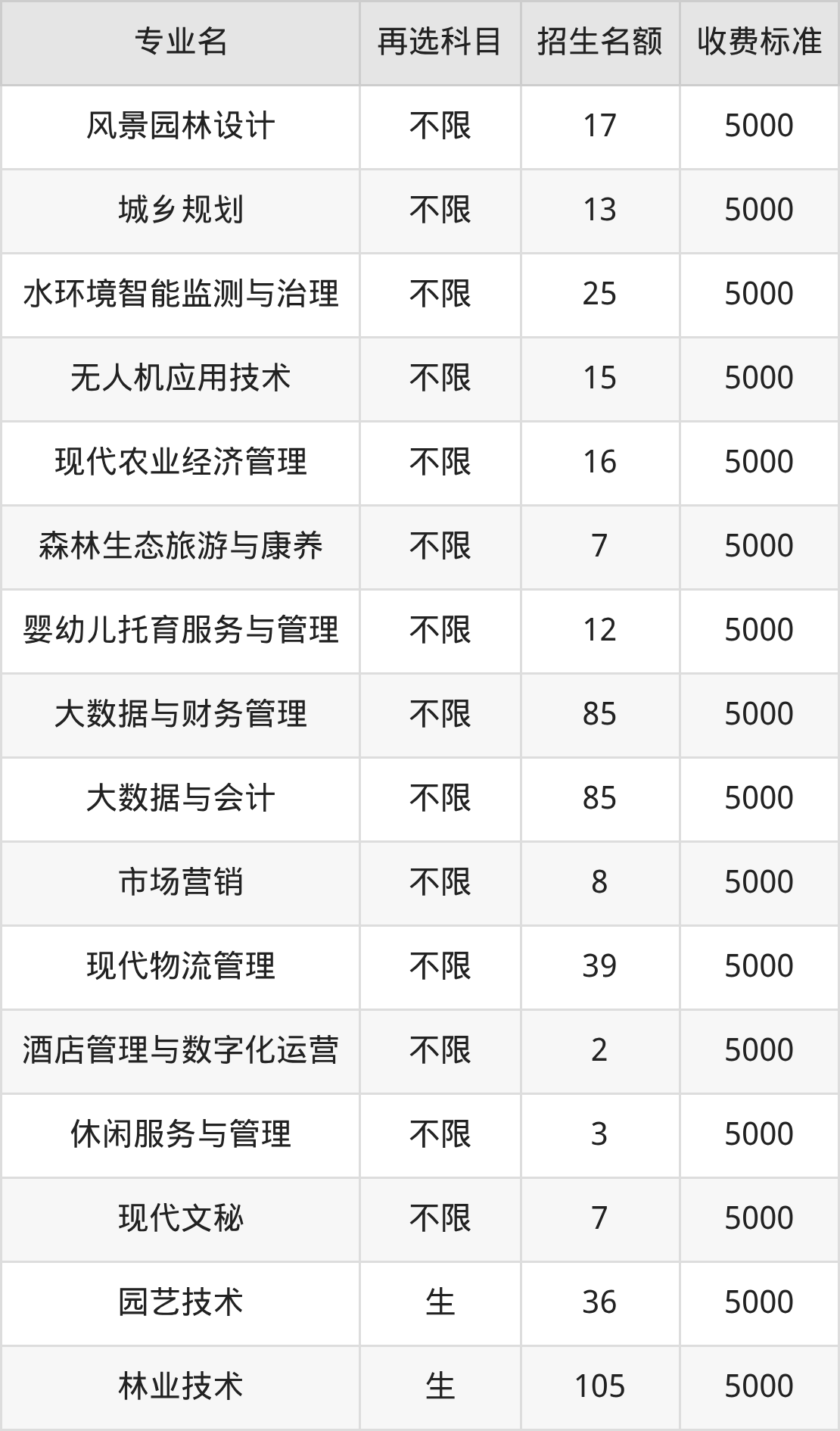 34.林业技术:学费是5000元
