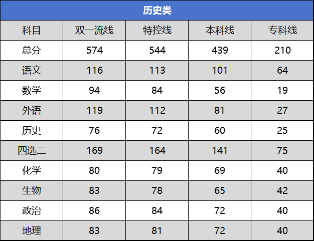 历史:双一流线需达76分,特控线72分,本科线60分,专科线25分。