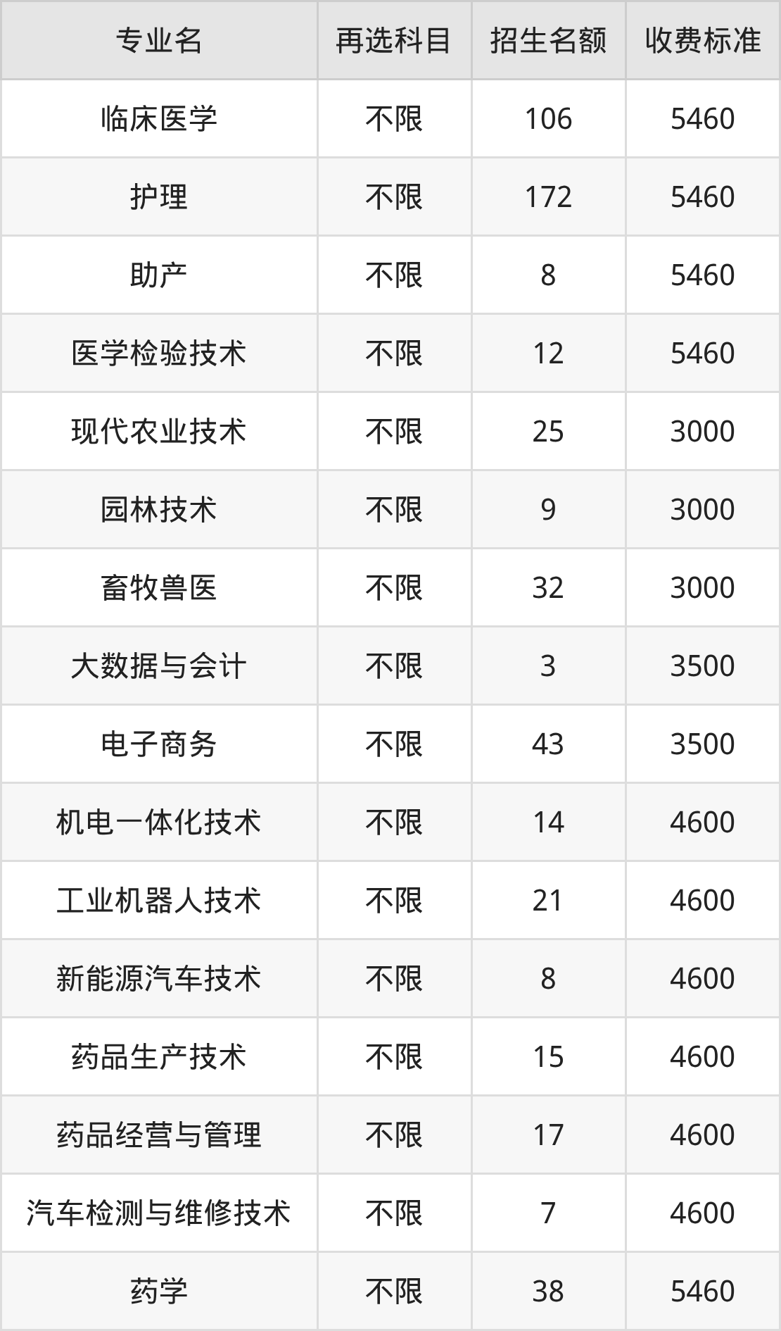14.药品生产技术:学费是4600元
