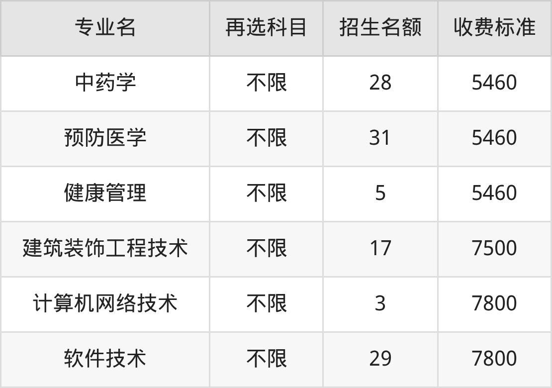 | 高职专科批 | 物理 | 软件技术 | 42 |