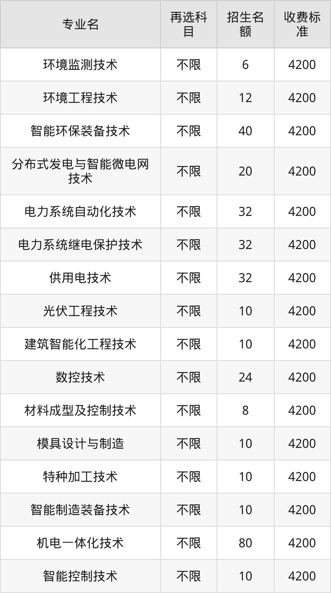 | 高职专科批 | 历史 | 光伏工程技术 | 10 |