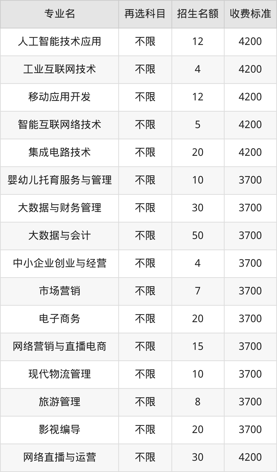 | 高职专科批 | 历史 | 移动互联应用技术 | 10 |