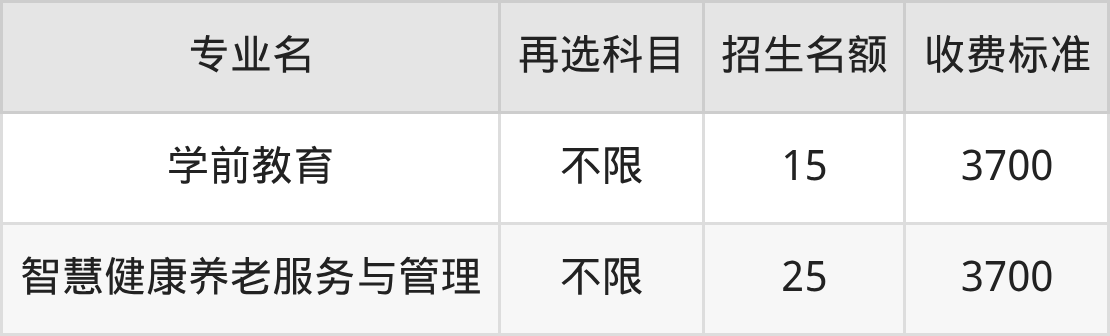 | 高职专科批 | 历史 | 学前教育 | 15 |