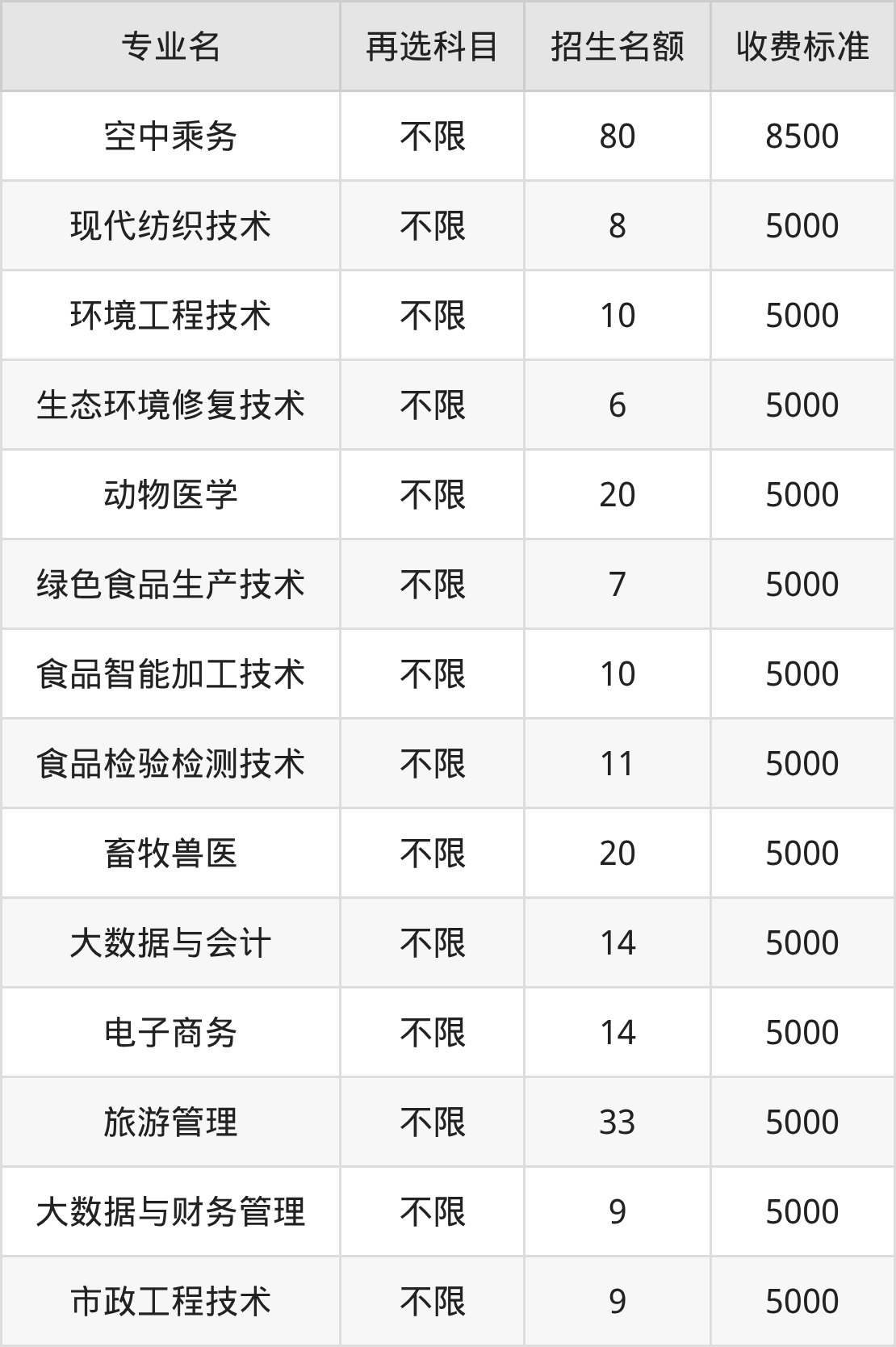 | 高职专科批 | 历史 | 食品检验检测技术 | 11 |