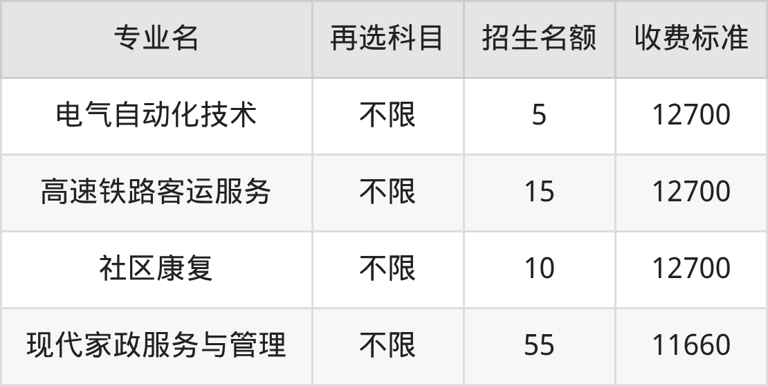 | 高职专科批 | 物理 | 高速铁路客运服务 | 10 |
