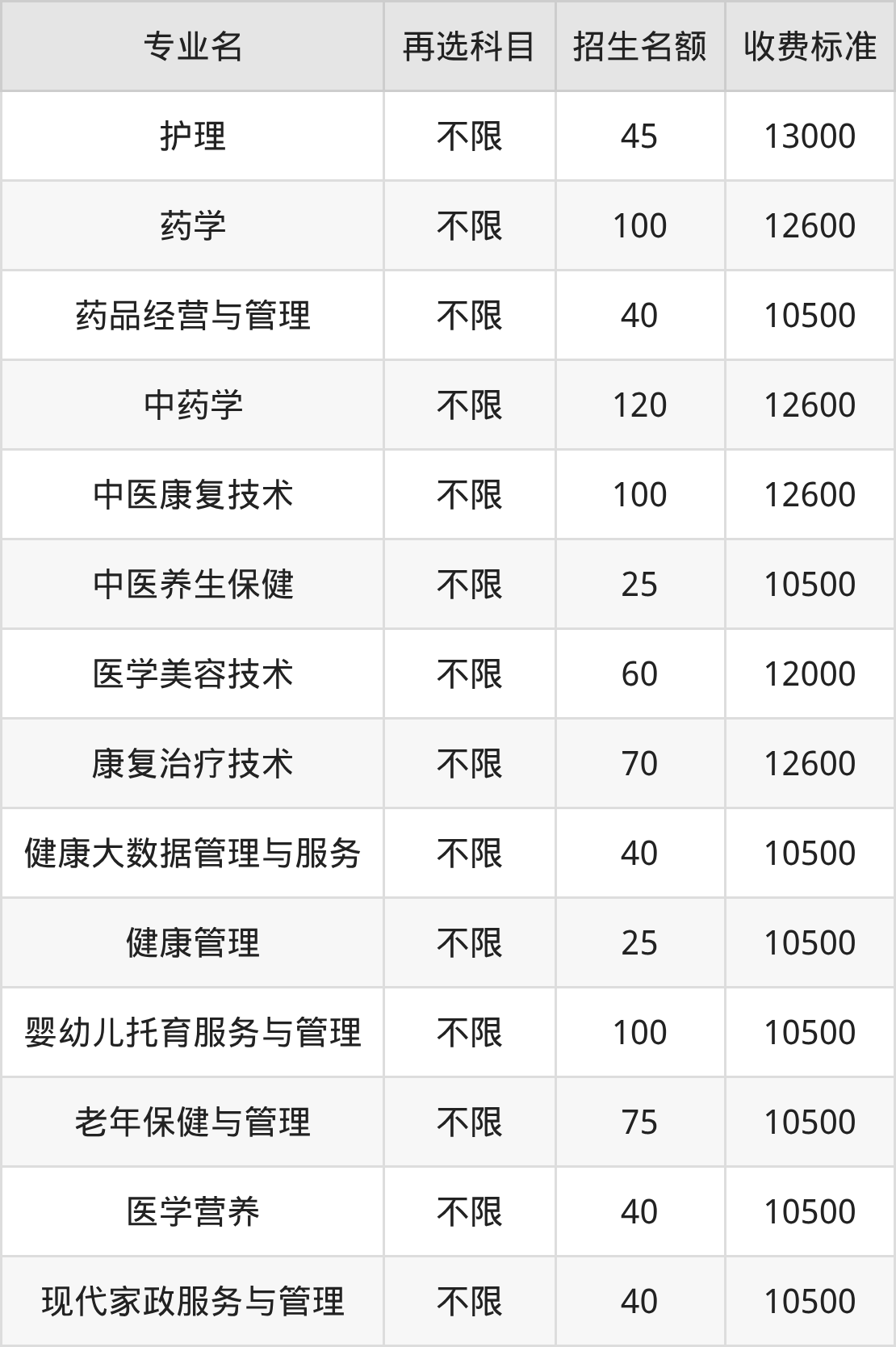 | 高职高专批 | 物理 | 健康管理 | 40 |