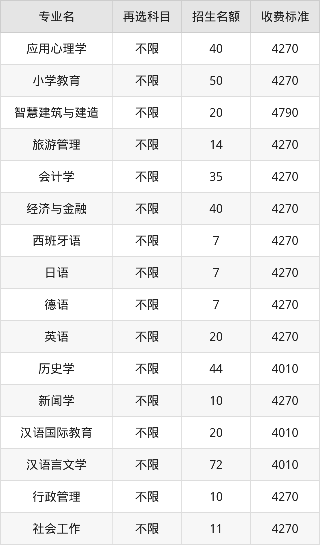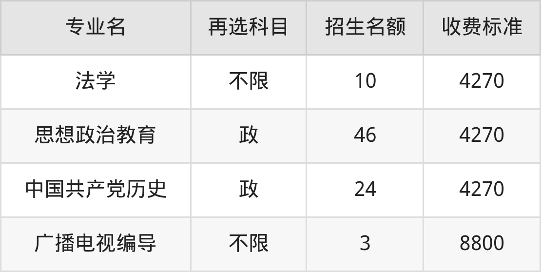 | 本科批 | 历史 | 汉语国际教育 | 20 |