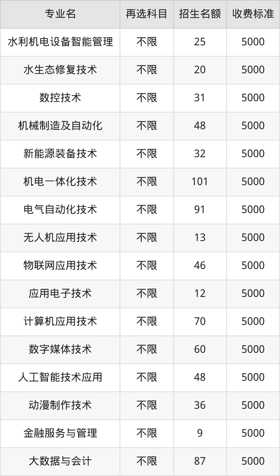 | 高职专科批 | 历史 | 水利机电设备智能管理 | 25 |