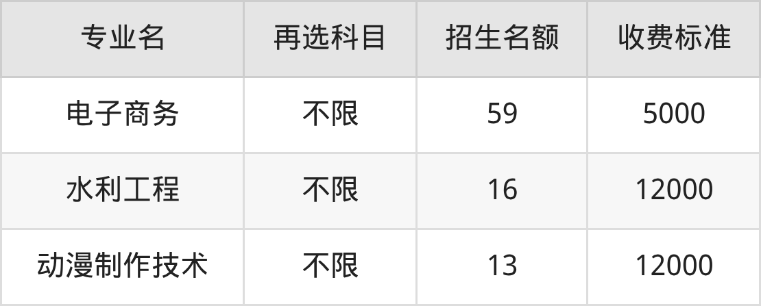 | 高职专科批 | 历史 | 水利工程 | 80 |