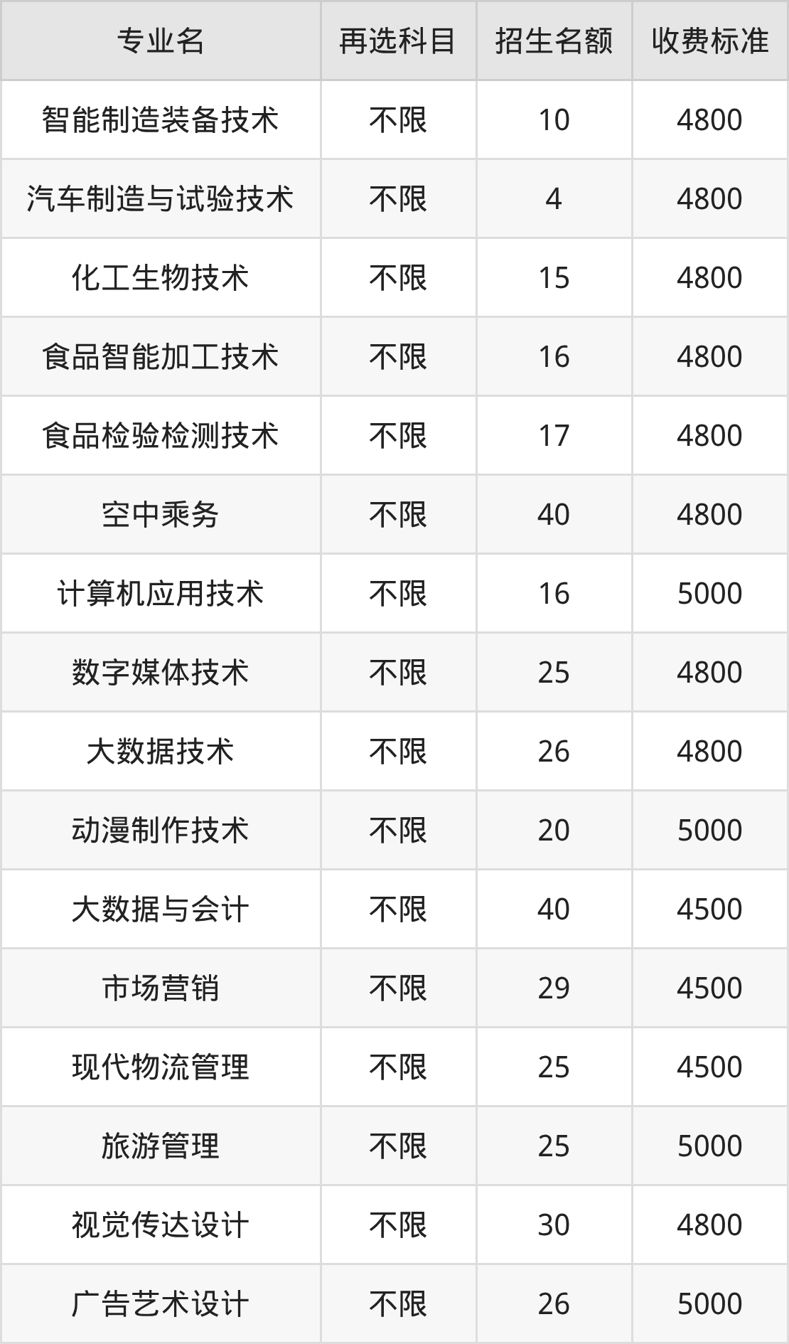 | 高职专科批 | 历史 | 动漫制作技术 | 20 |