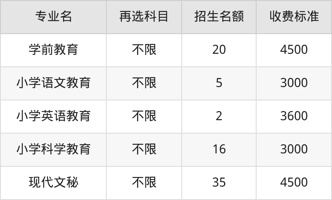 | 高职专科批 | 物理 | 小学数学教育 | 15 |