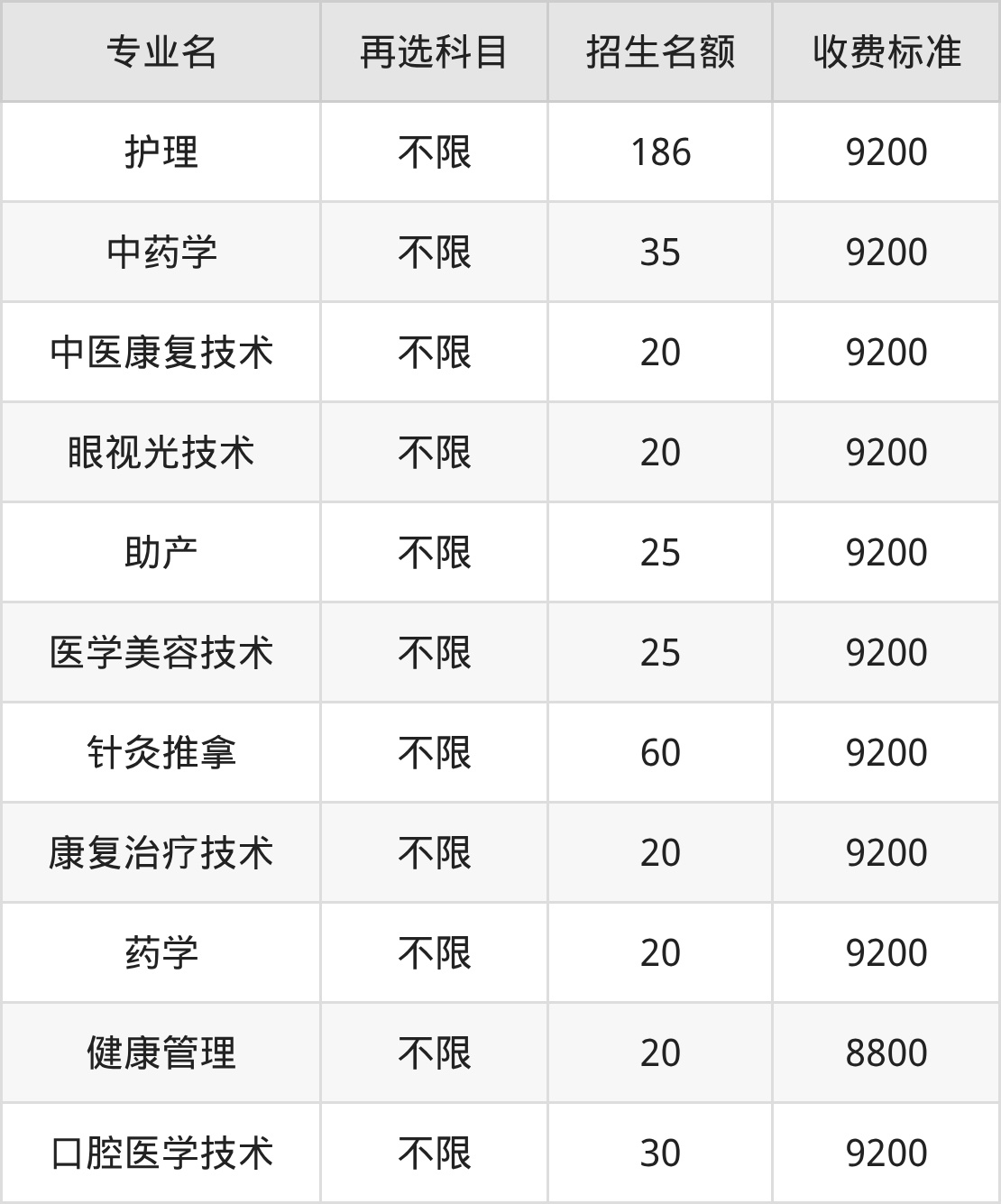 | 专科高职批 | 物理 | 健康管理 | 20 |