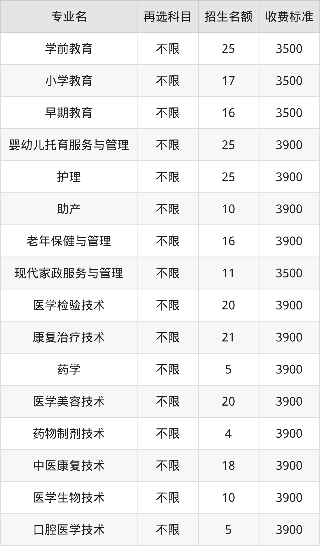 | 高职专科批 | 物理 | 学前教育 | 10 |