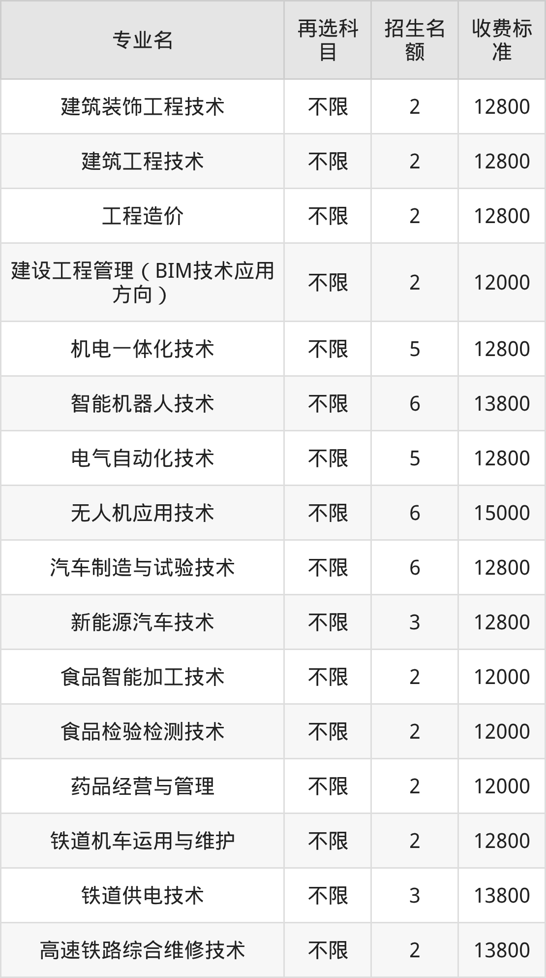 2.建筑工程技术:学费是12800元
