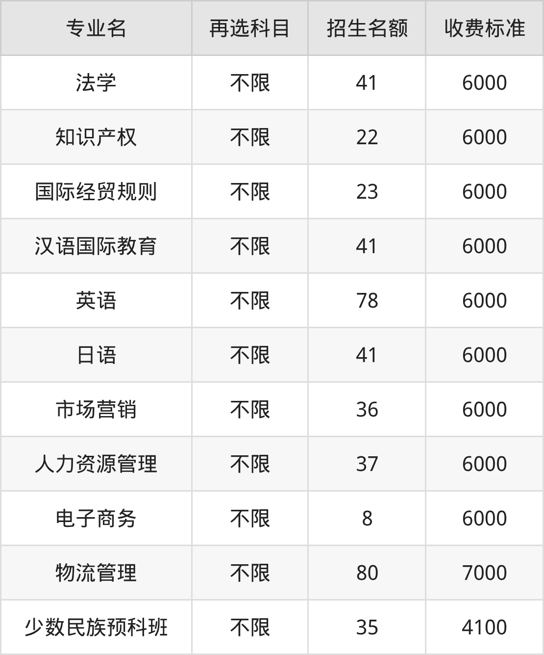 桂林电子科技大学在历史组本科批招生的各个专业,每年的学费是4100元-7000元。招生人数最多的专业是物流管理,2025年招80人,学费是7000元。