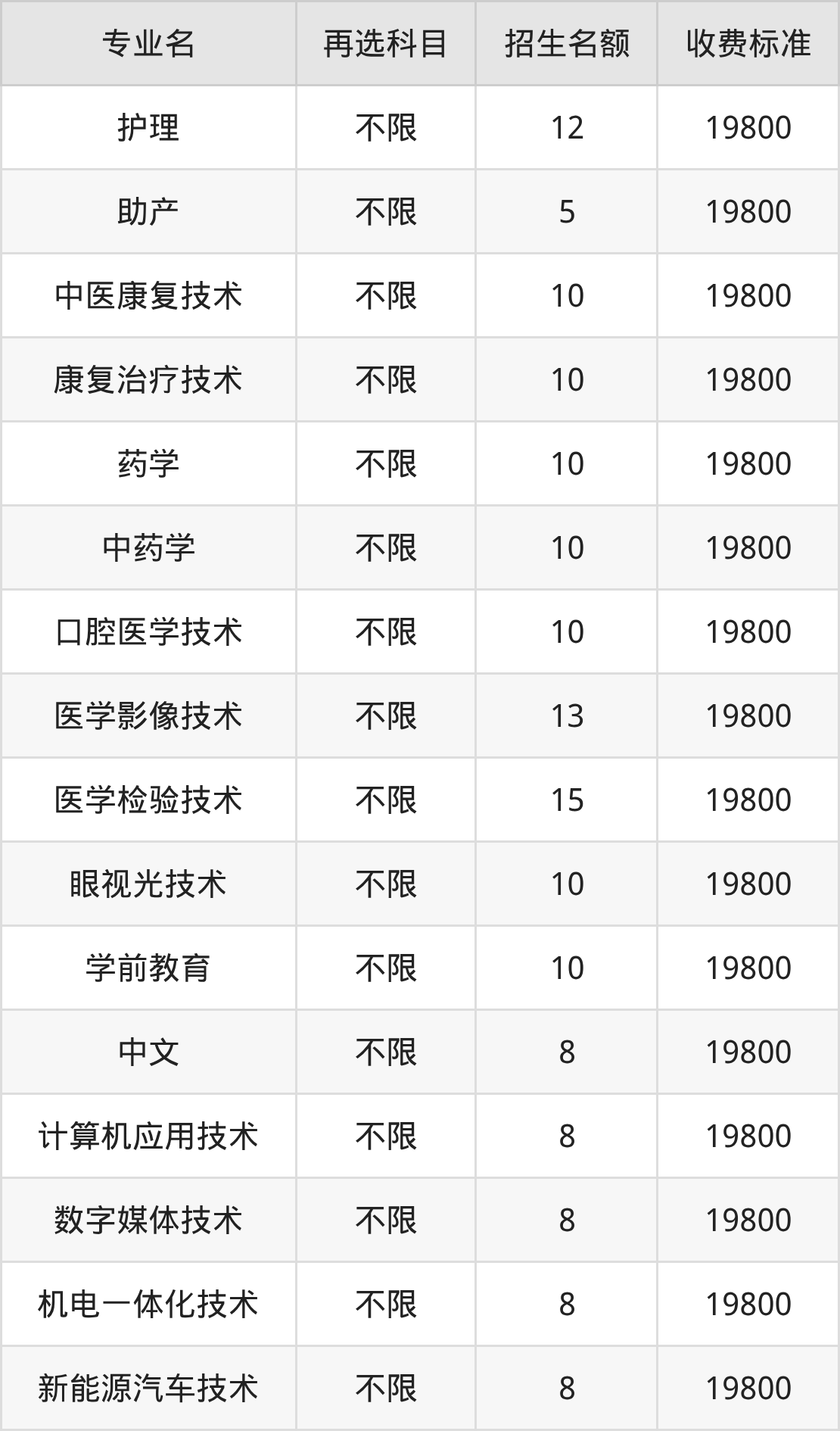 | 专科高职批 | 物理 | 医学检验技术 | 15 |