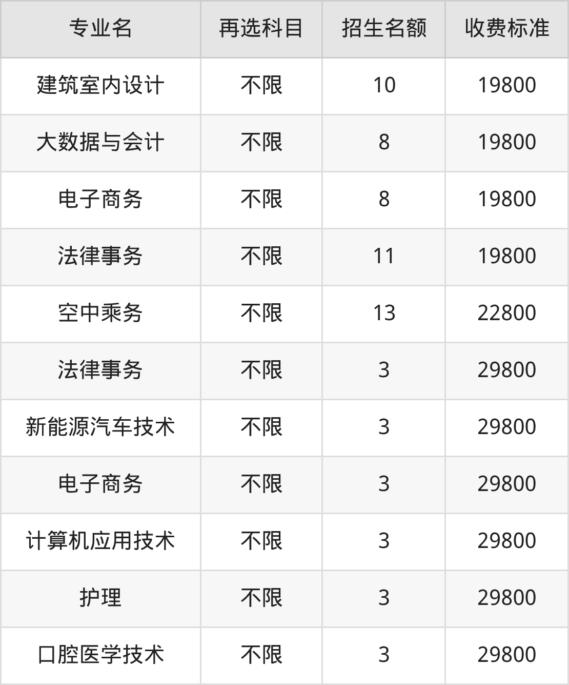 | 专科高职批 | 历史 | 建筑室内设计 | 10 |