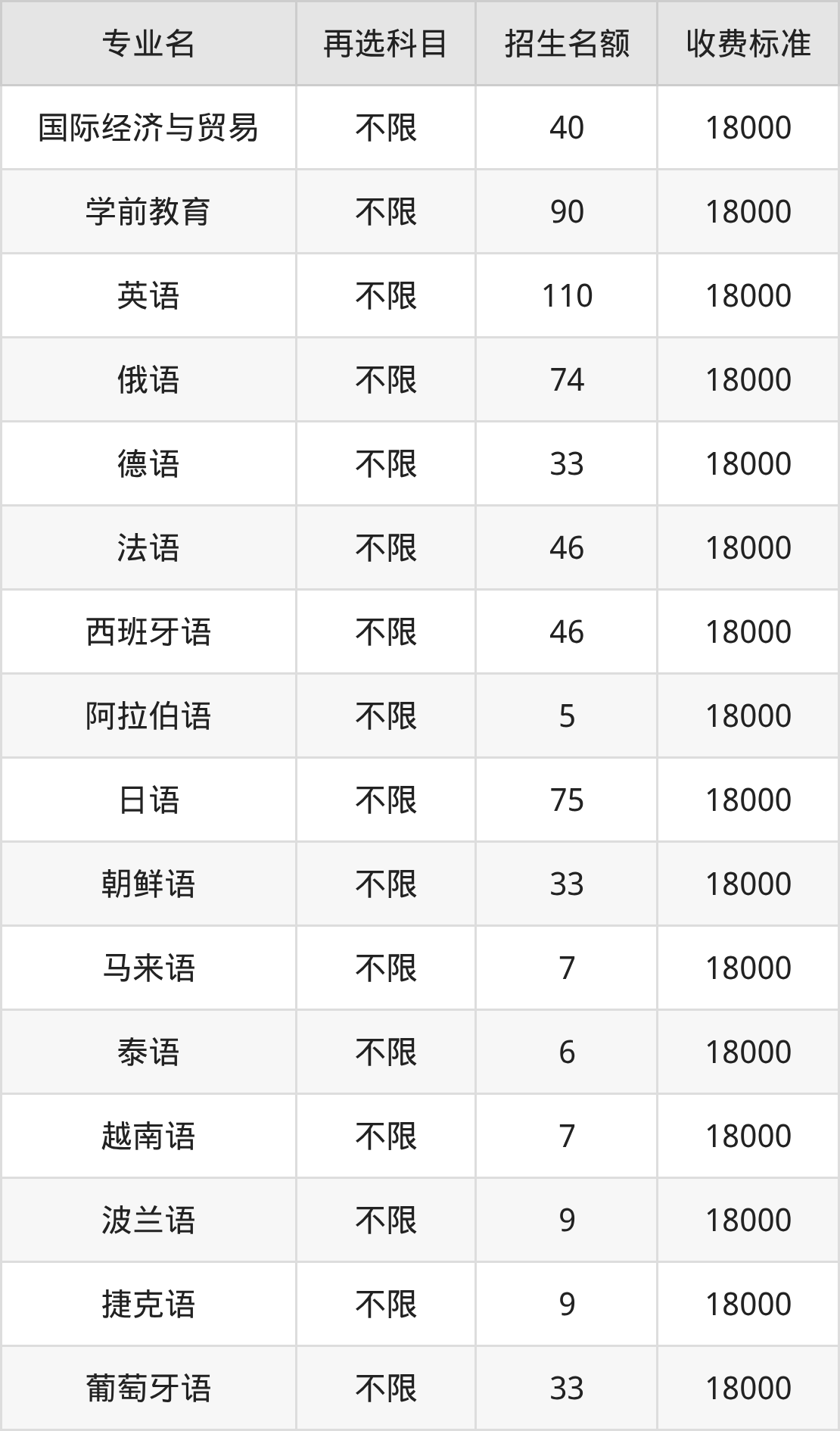1.国际经济与贸易:学费是18000元