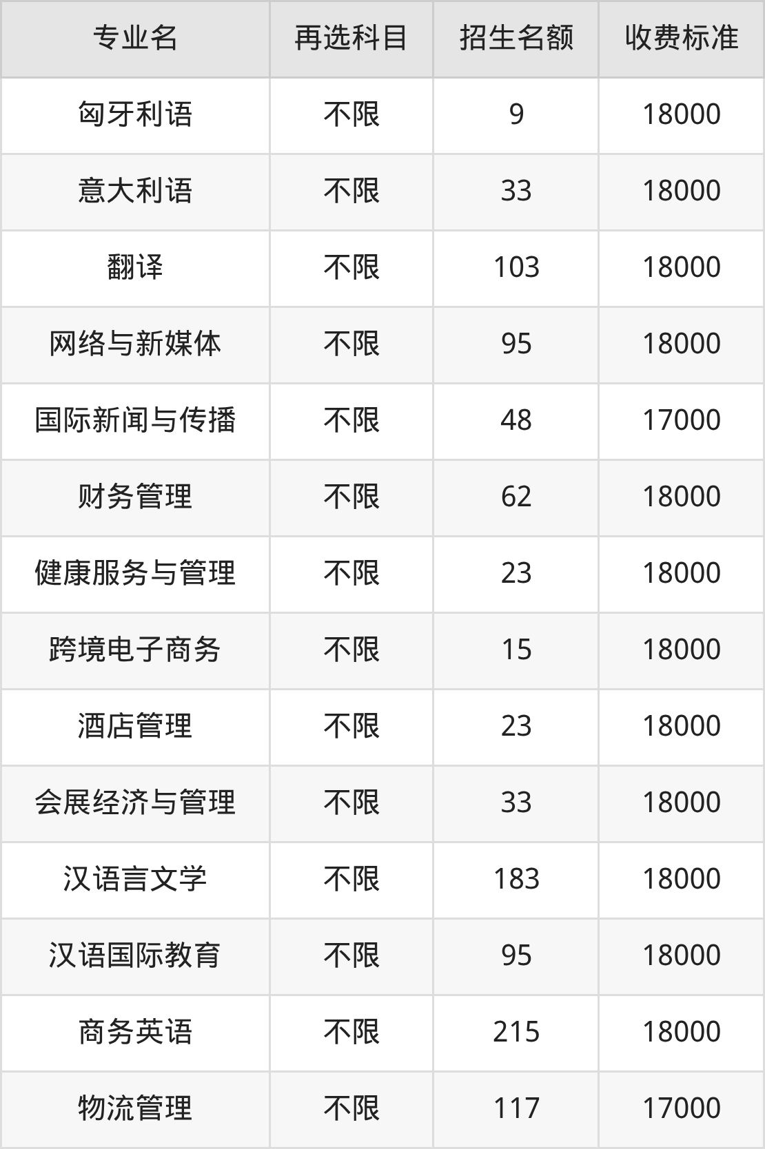 28.汉语国际教育:学费是18000元