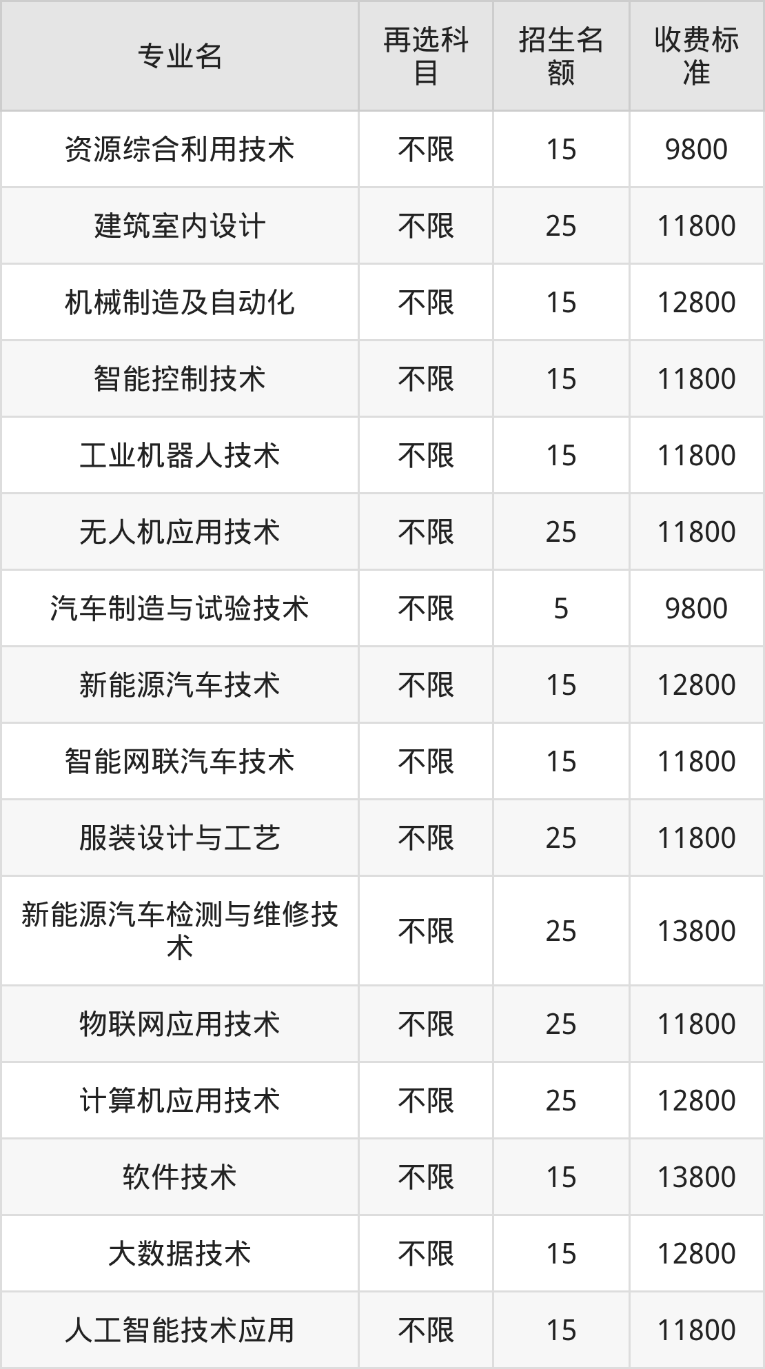 7.汽车制造与试验技术:学费是9800元