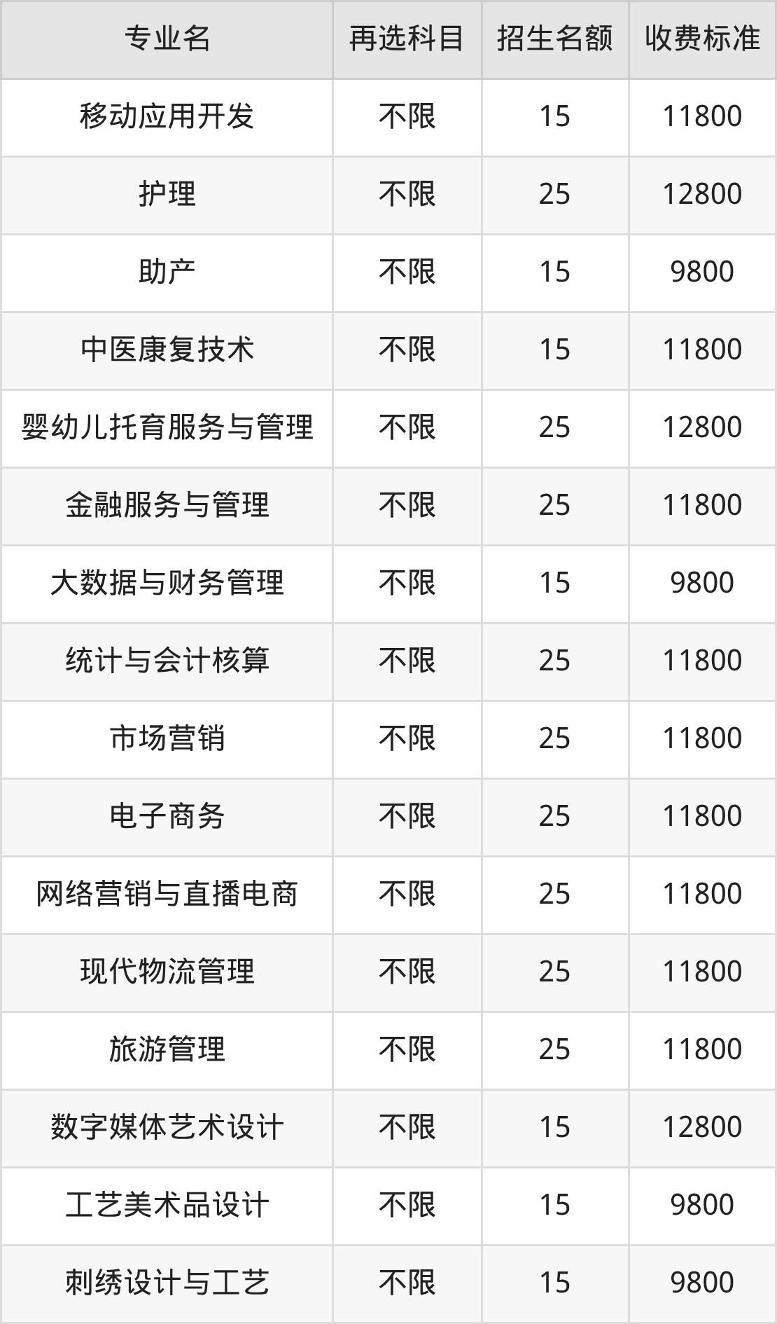 | 高职高专批 | 历史 | 软件技术 | 15 |