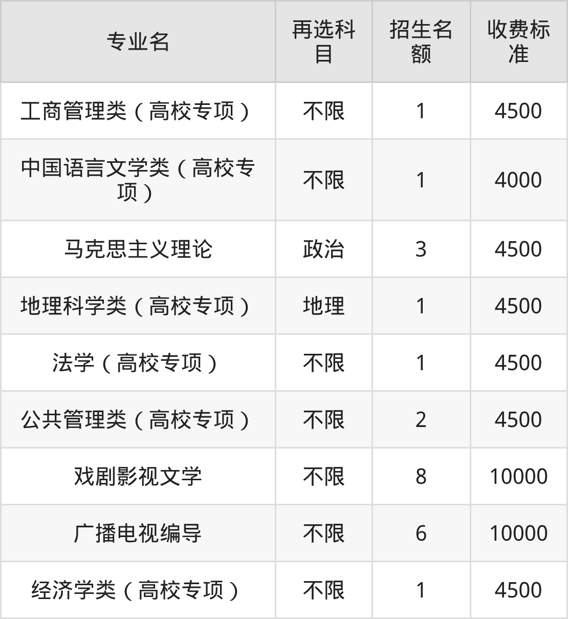 16.公共管理类(高校专项)(包含专业:行政管理、文化产业管理、社会工作):学费是4500元