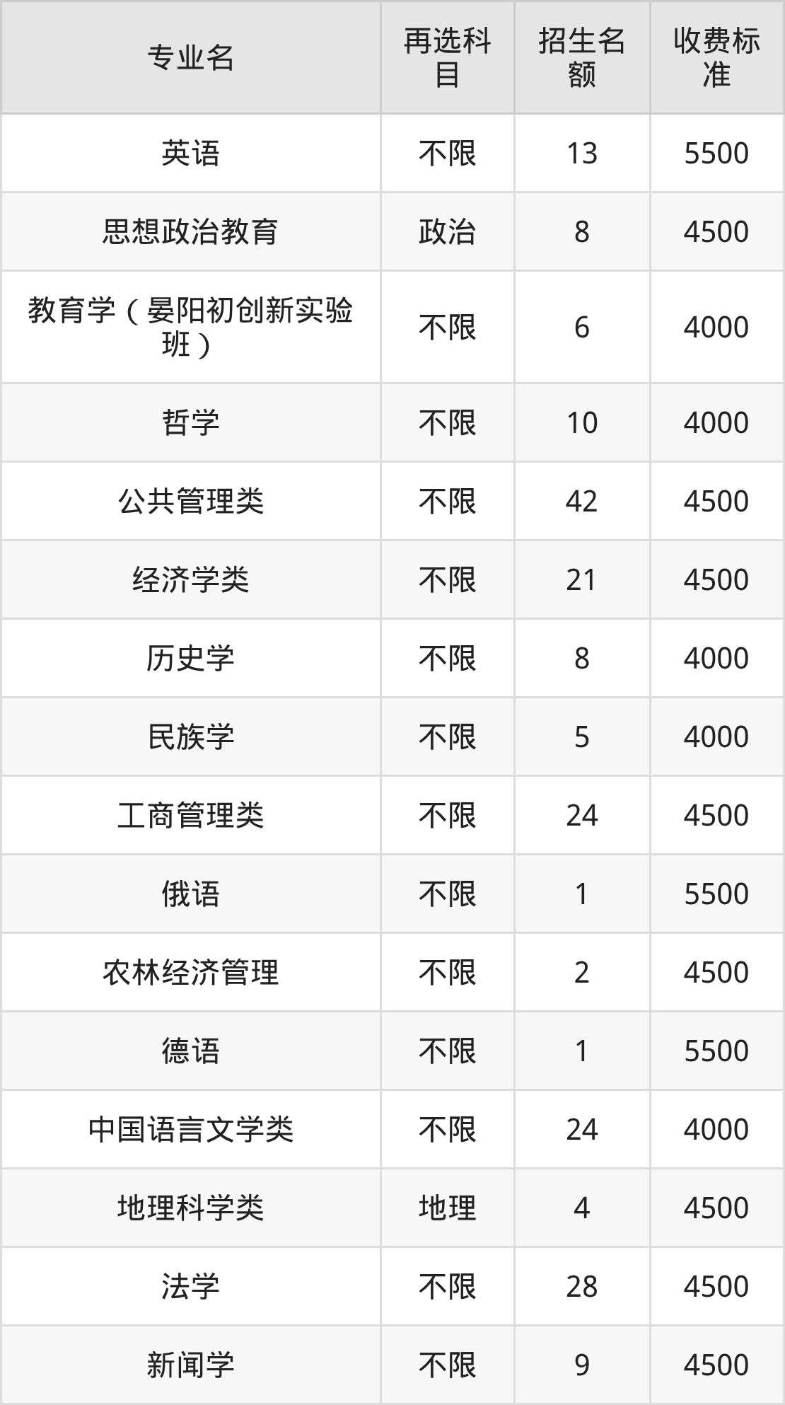 西南大学在历史组本科批招生的各个专业,每年的学费是4000元-5500元。招生人数最多的专业是公共管理类,2025年招42人,学费是4500元。