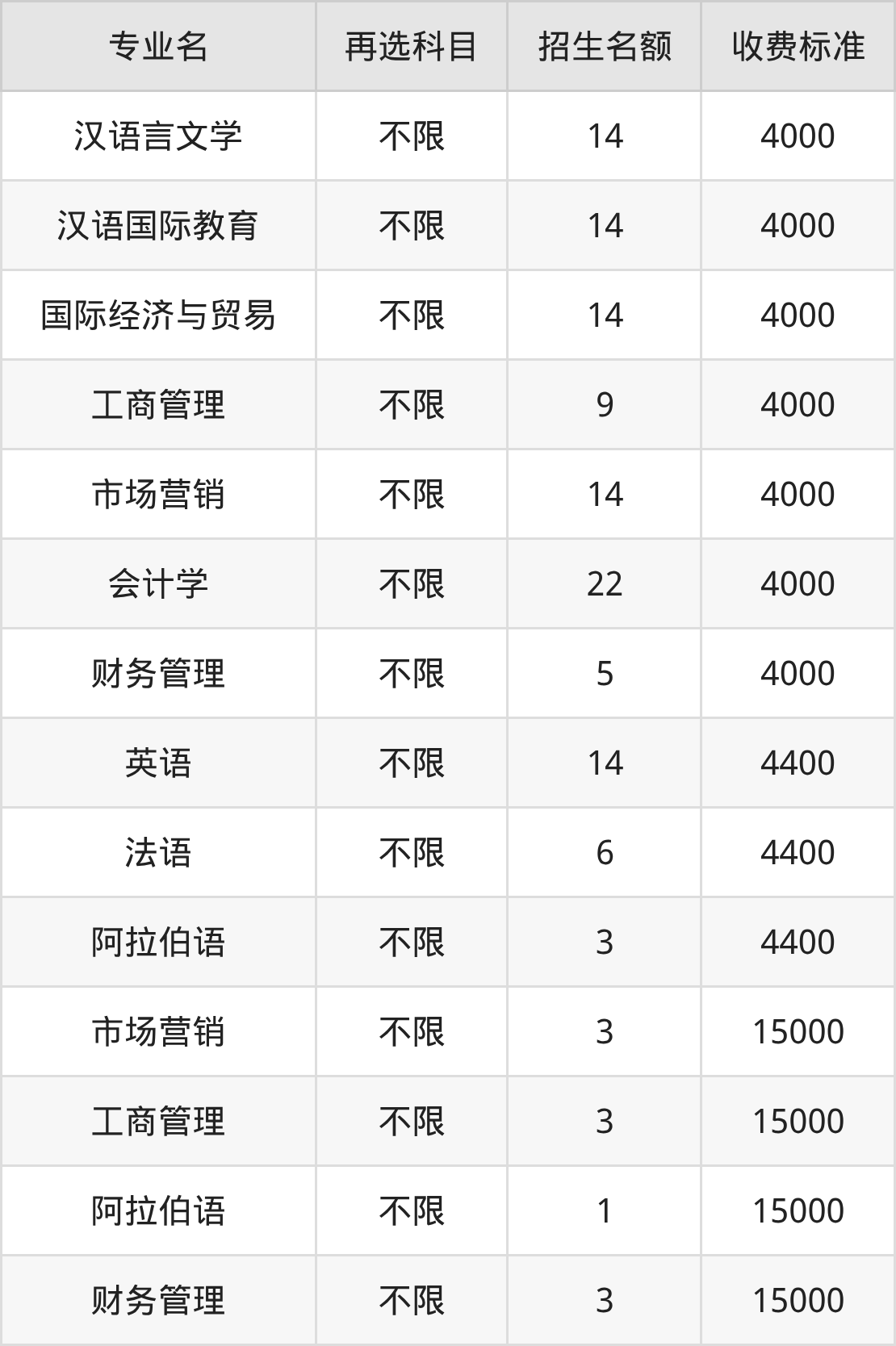 | 本科批C段 | 历史 | 阿拉伯语 | 3 |