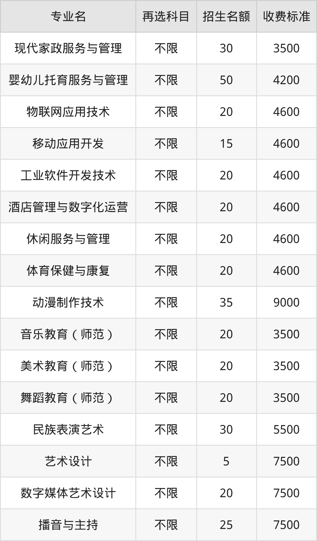 永州师范高等专科学校在历史组高职专科批招生的各个专业,每年的学费是3500元-9000元。招生人数最多的专业是婴幼儿托育服务与管理,2025年招50人,学费是4200元。