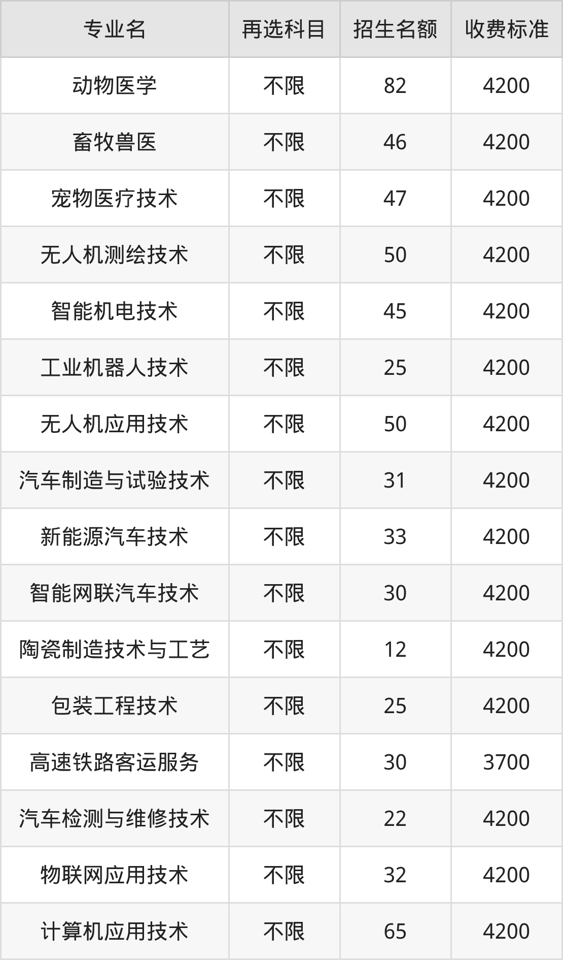 | 高职专科批 | 历史 | 宠物医疗技术 | 47 |