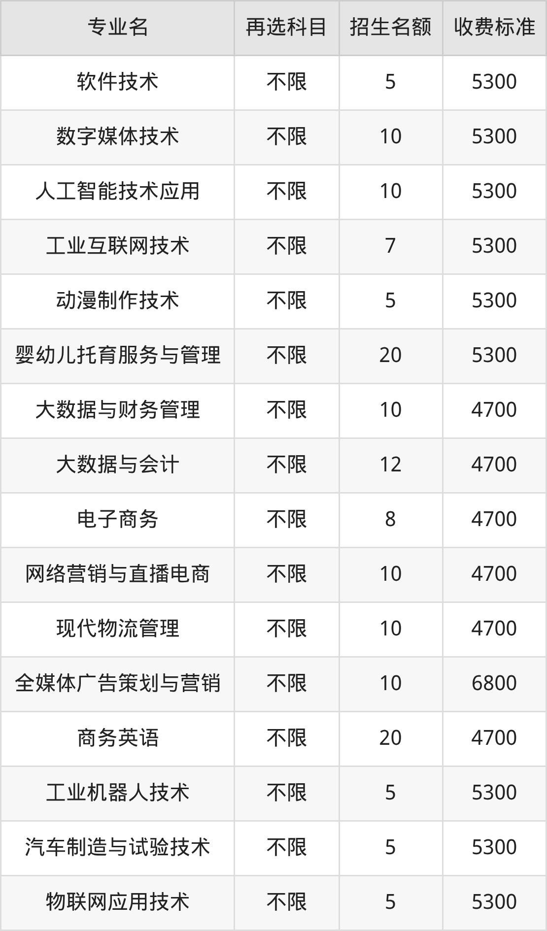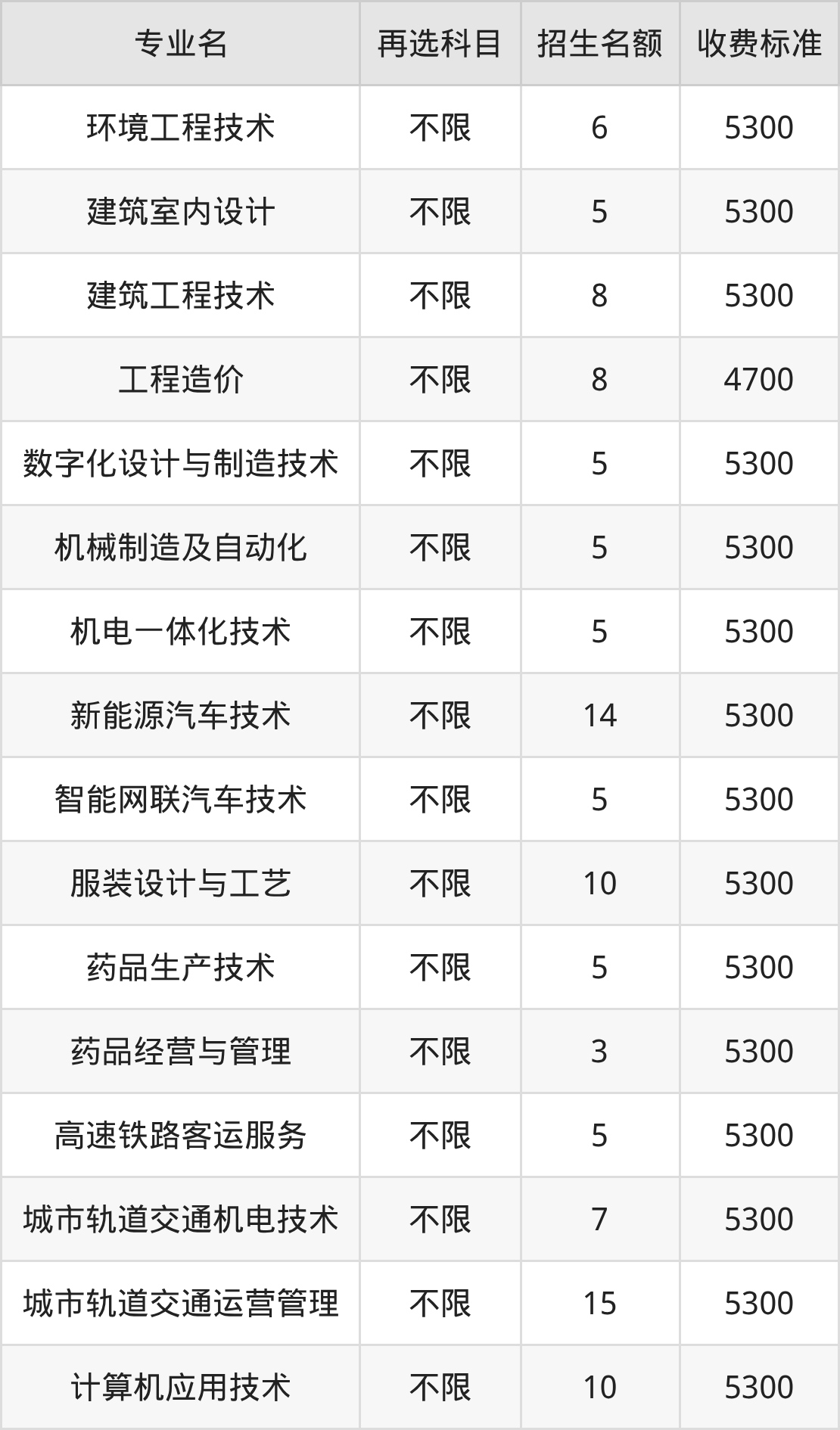 二、南通职业大学各专业收费标准