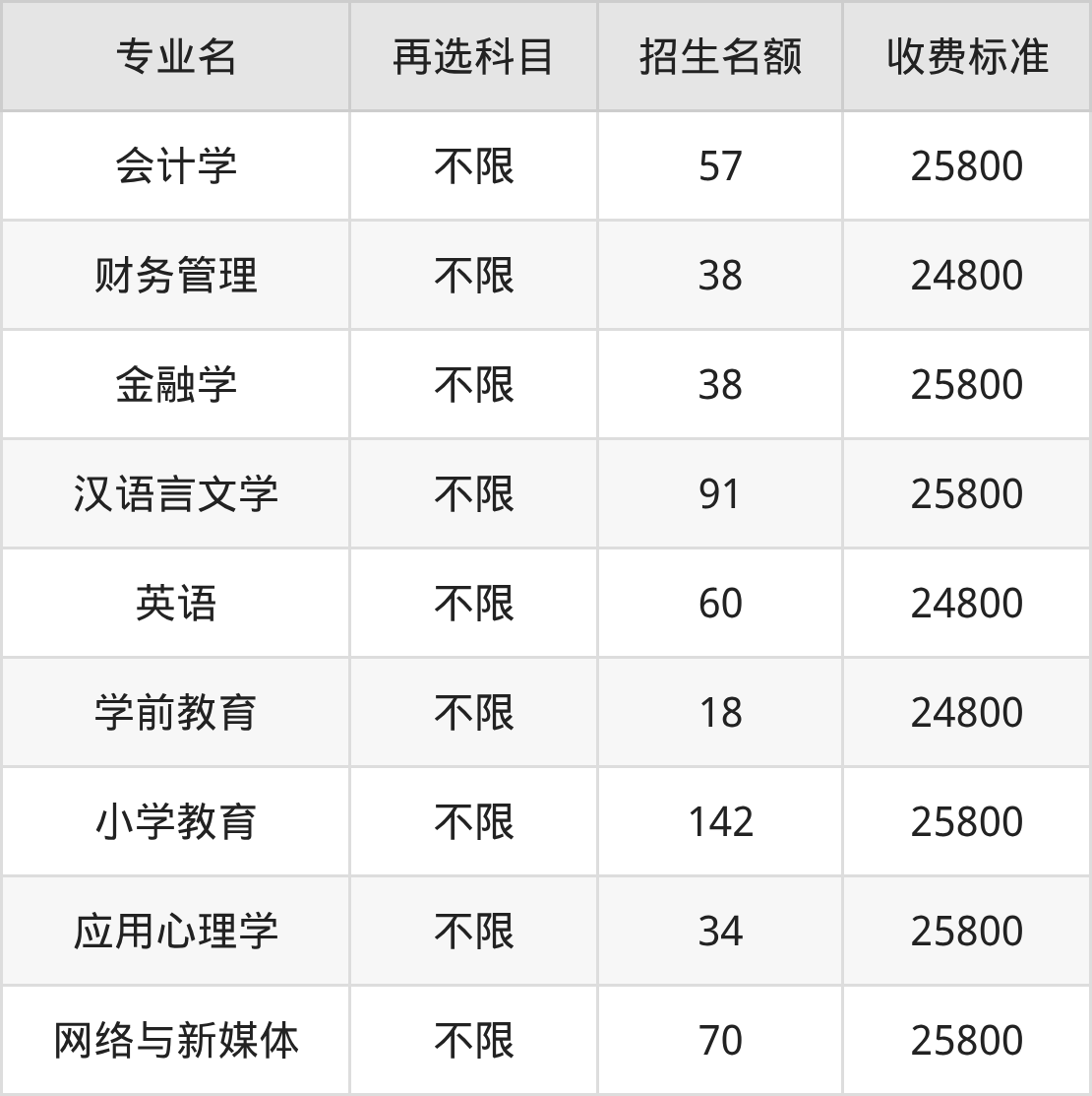 武汉工程科技学院在历史组本科批招生的各个专业,每年的学费是24800元-25800元。招生人数最多的专业是小学教育,2025年招142人,学费是25800元。