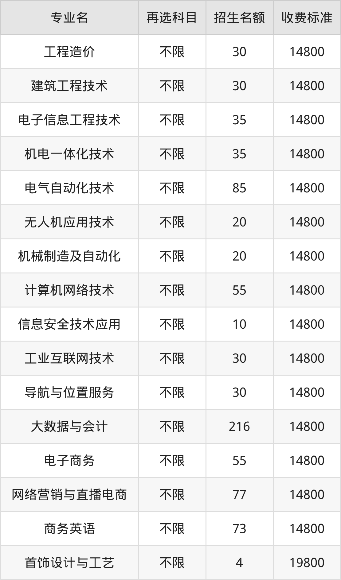 | 高职高专批 | 历史 | 工程造价 | 30 |