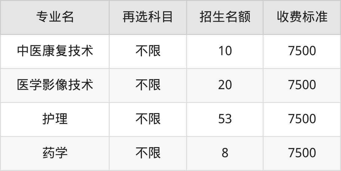 山西同文职业技术学院在历史组专科高职批招生的各个专业,每年的学费是7500元。招生人数最多的专业是护理,2025年招53人,学费是7500元。