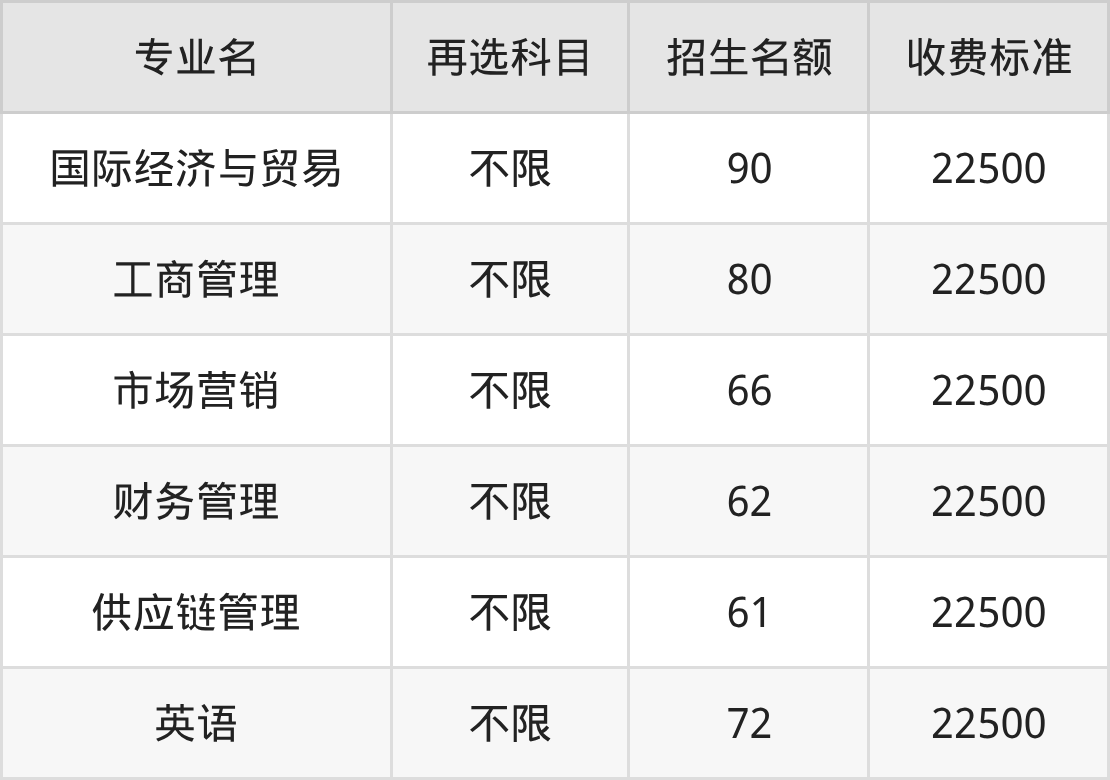 | 本科批 | 物理 | 国际经济与贸易 | 70 |