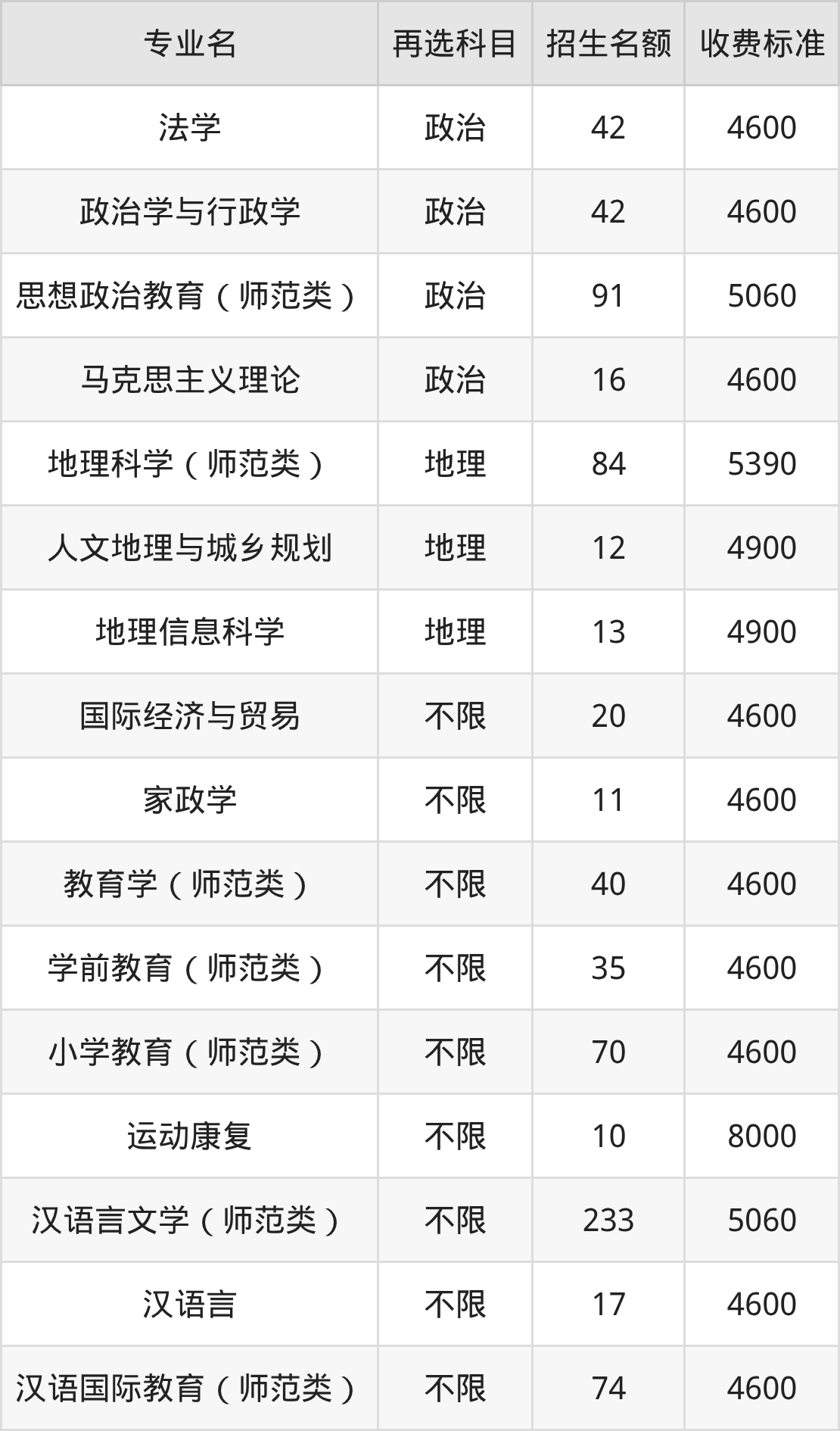 河北师范大学在历史组本科批招生的各个专业,每年的学费是4600元-26000元。招生人数最多的专业是汉语言文学,2025年招233人,学费是5060元。