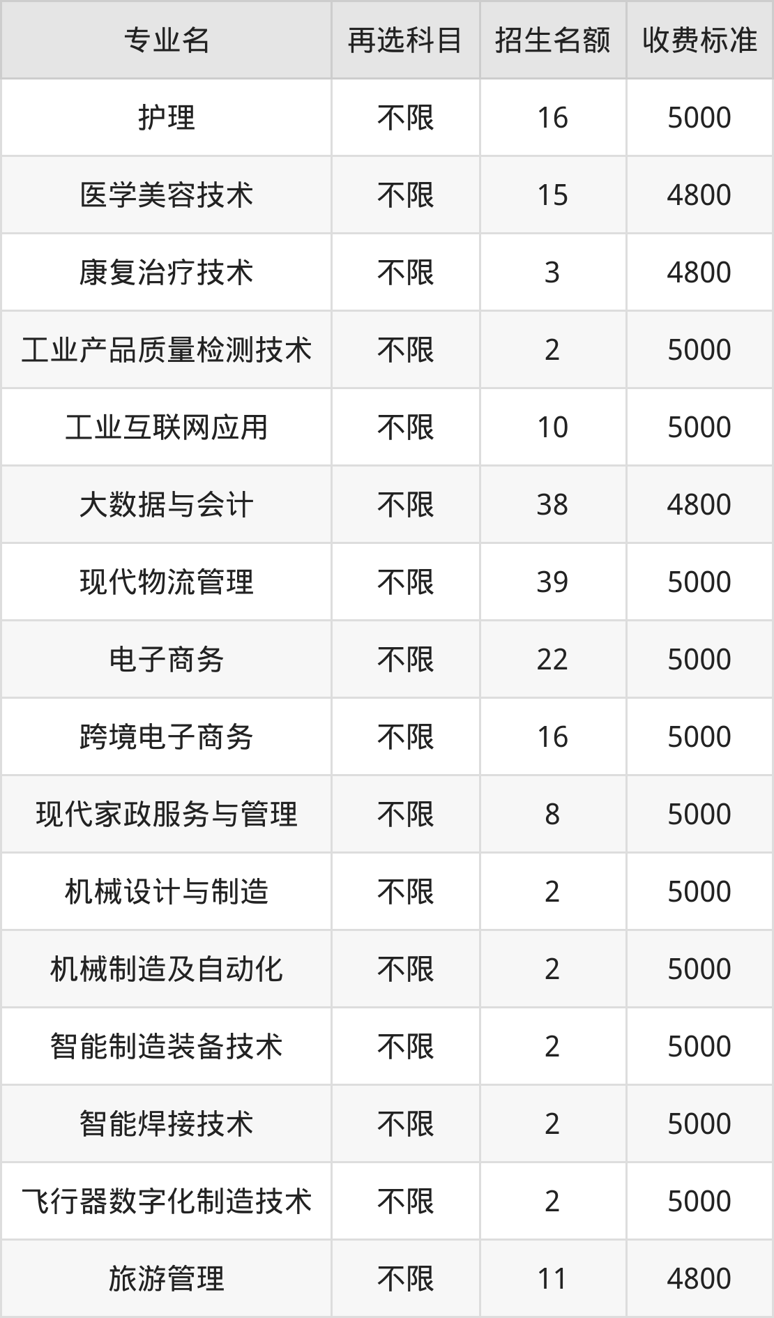 | 高职专科批 | 物理 | 旅游管理 | 40 |