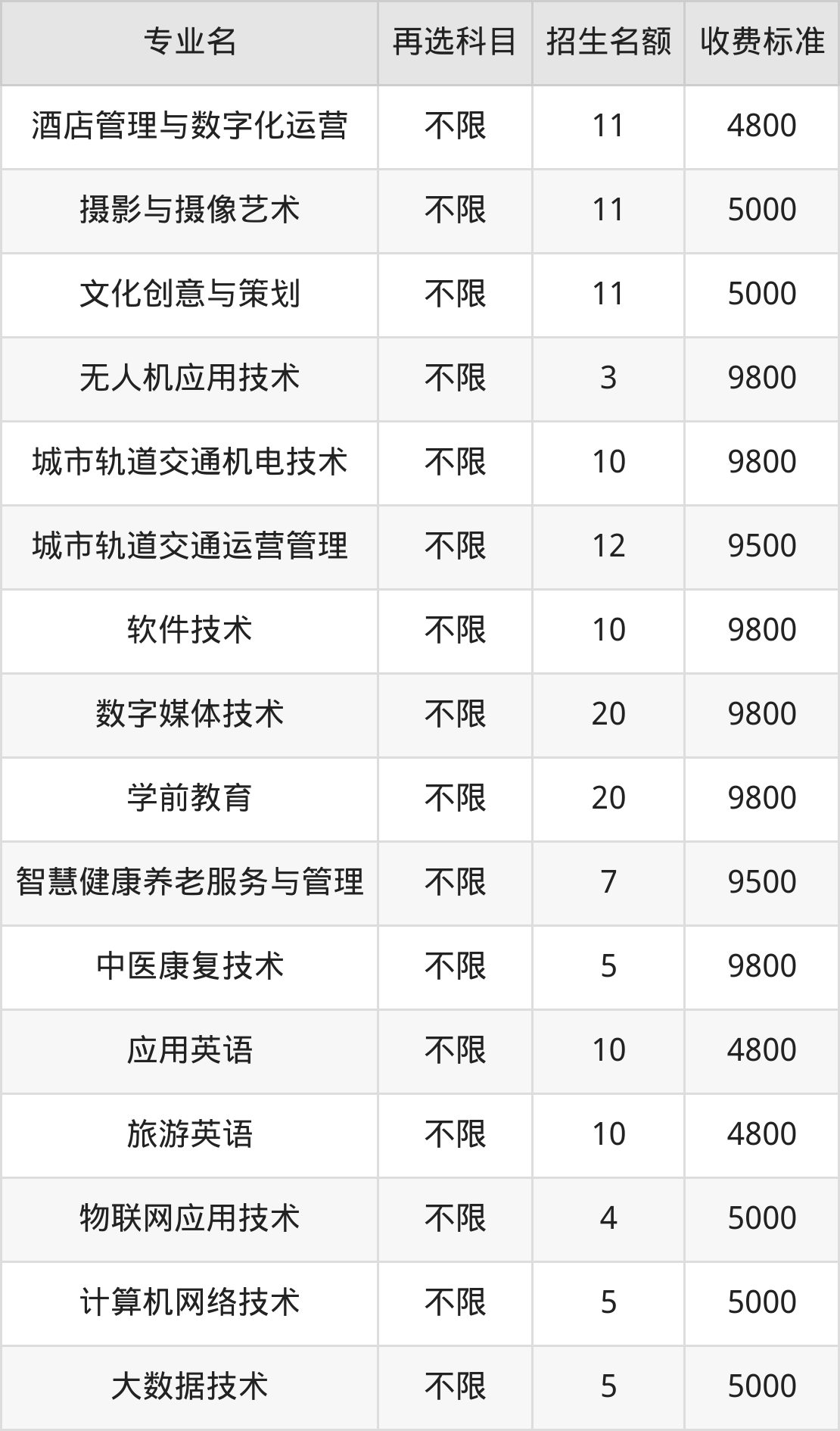| 高职专科批 | 历史 | 数字媒体技术 | 20 |