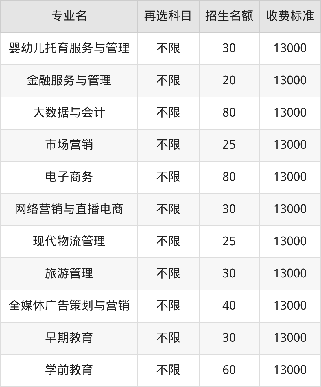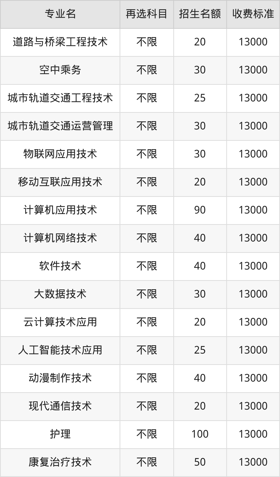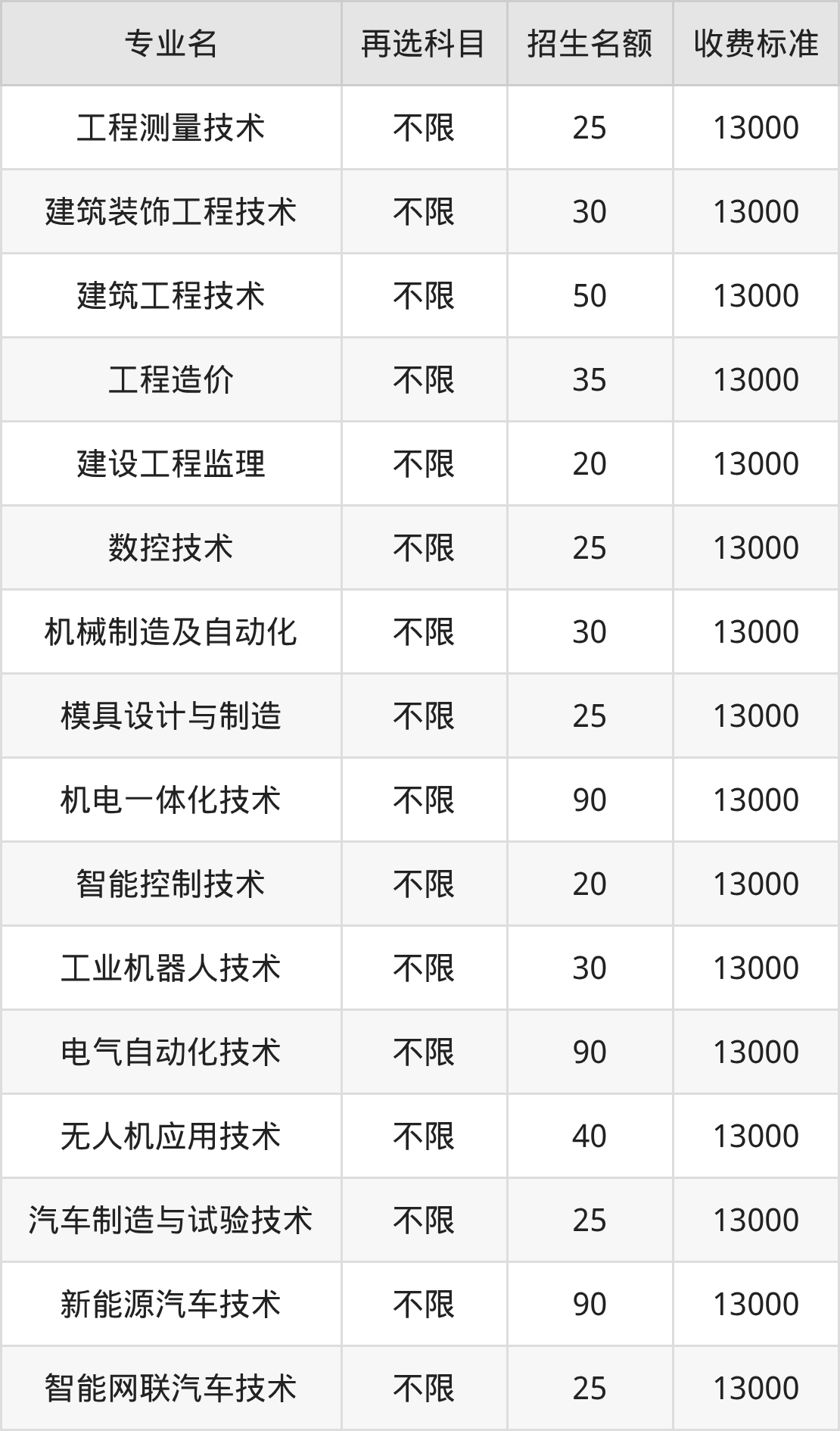 郑州理工职业学院在历史组高职专科批招生的各个专业,每年的学费是13000元。招生人数最多的专业是护理,2025年招100人,学费是13000元。