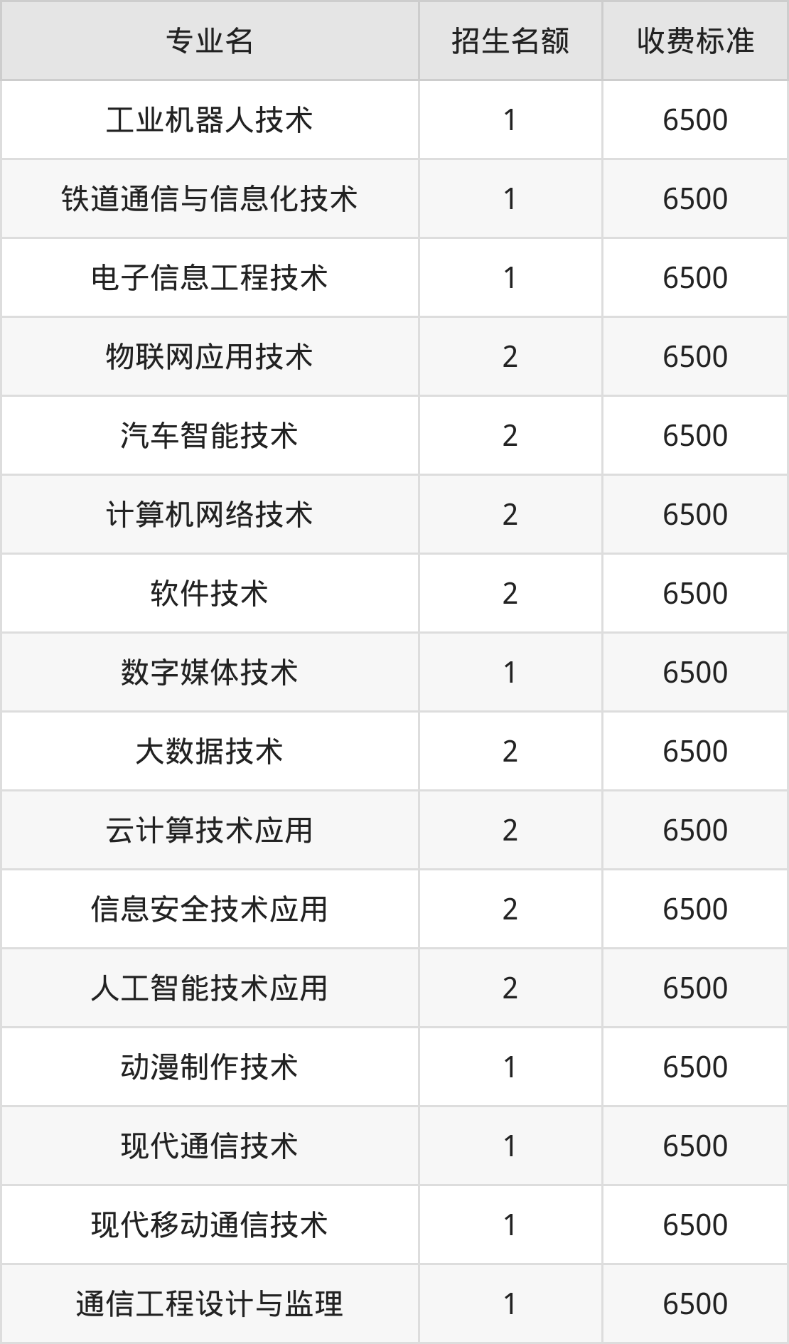 陕西邮电职业技术学院理科高职专科批共计23个招生专业,各专业每年的学费是6500元。