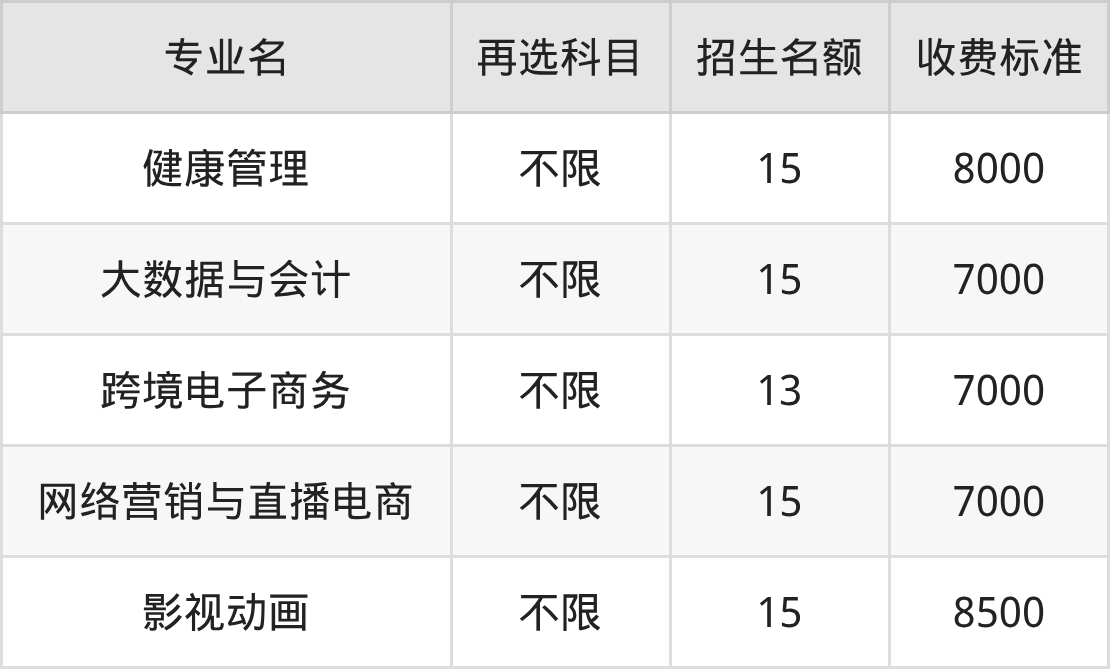 | 高职高专批 | 物理 | 网络营销与直播电商 | 15 |
