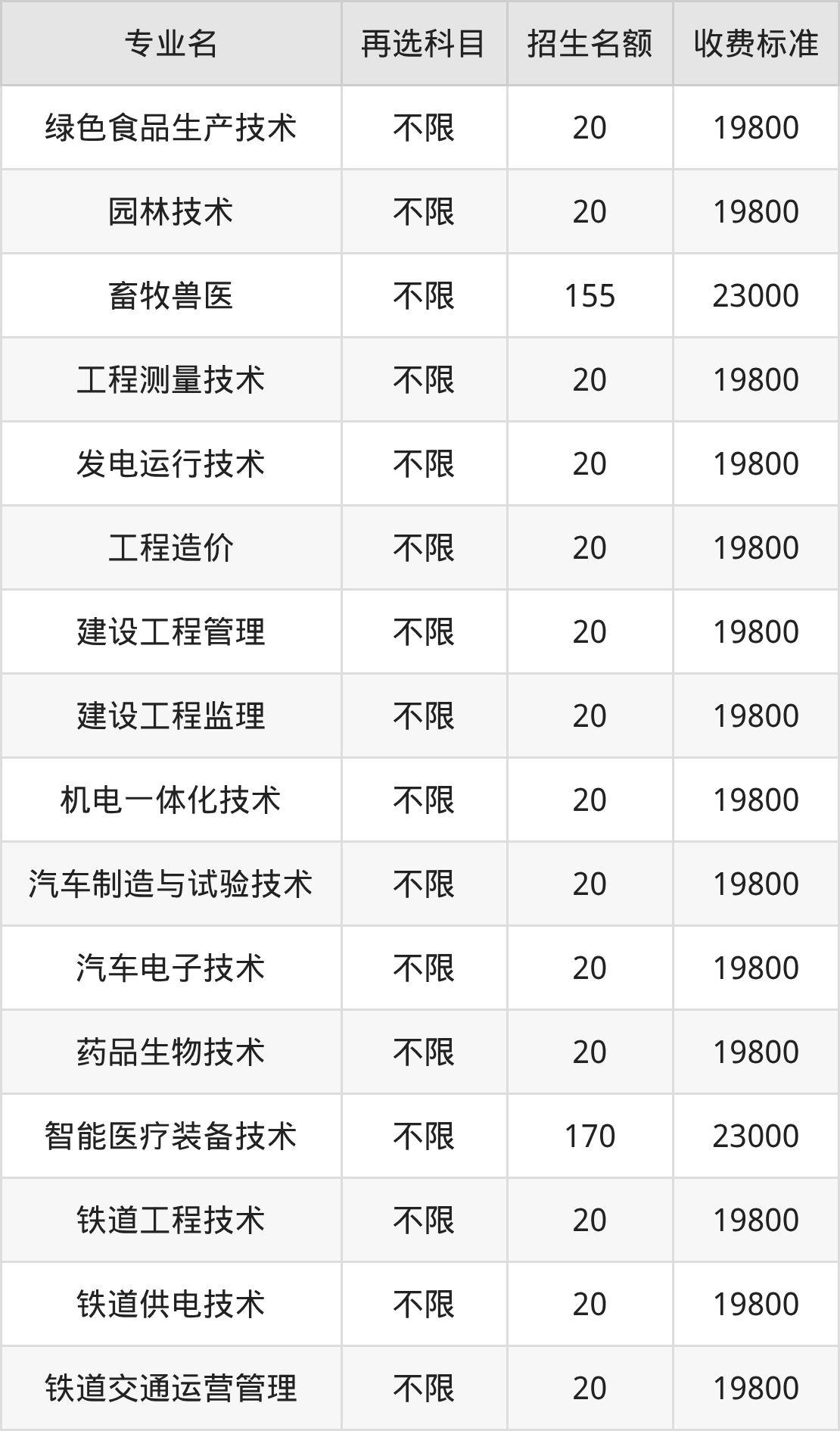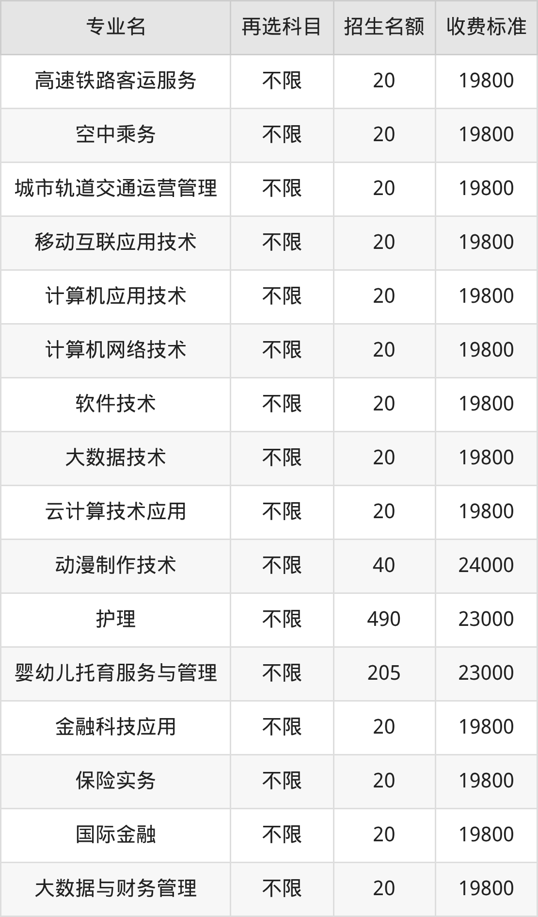 | 专科批 | 历史 | 铁道交通运营管理 | 20 |
