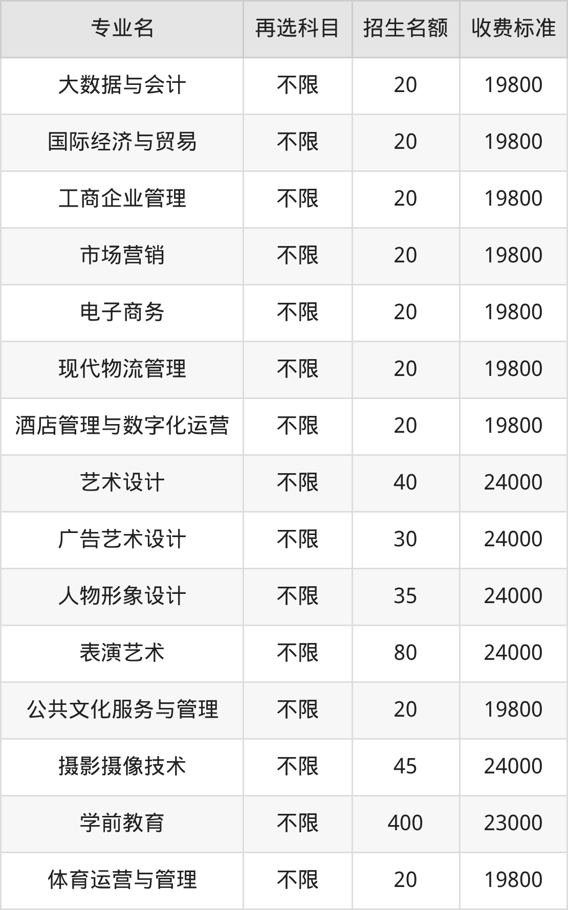 | 专科批 | 物理 | 大数据与财务管理 | 20 |