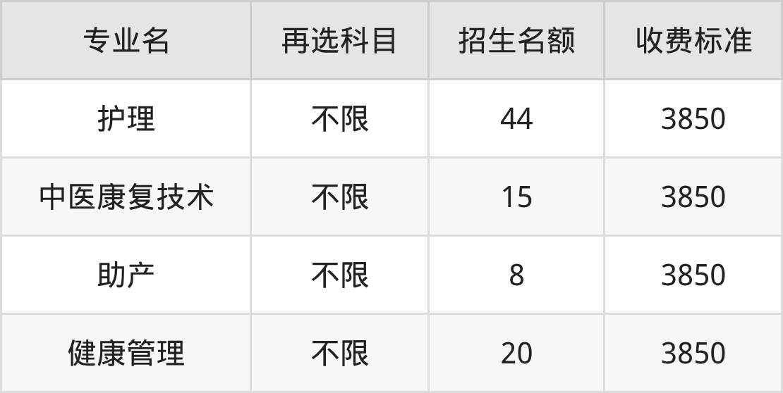 | 高职专科批 | 历史 | 健康管理 | 20 |