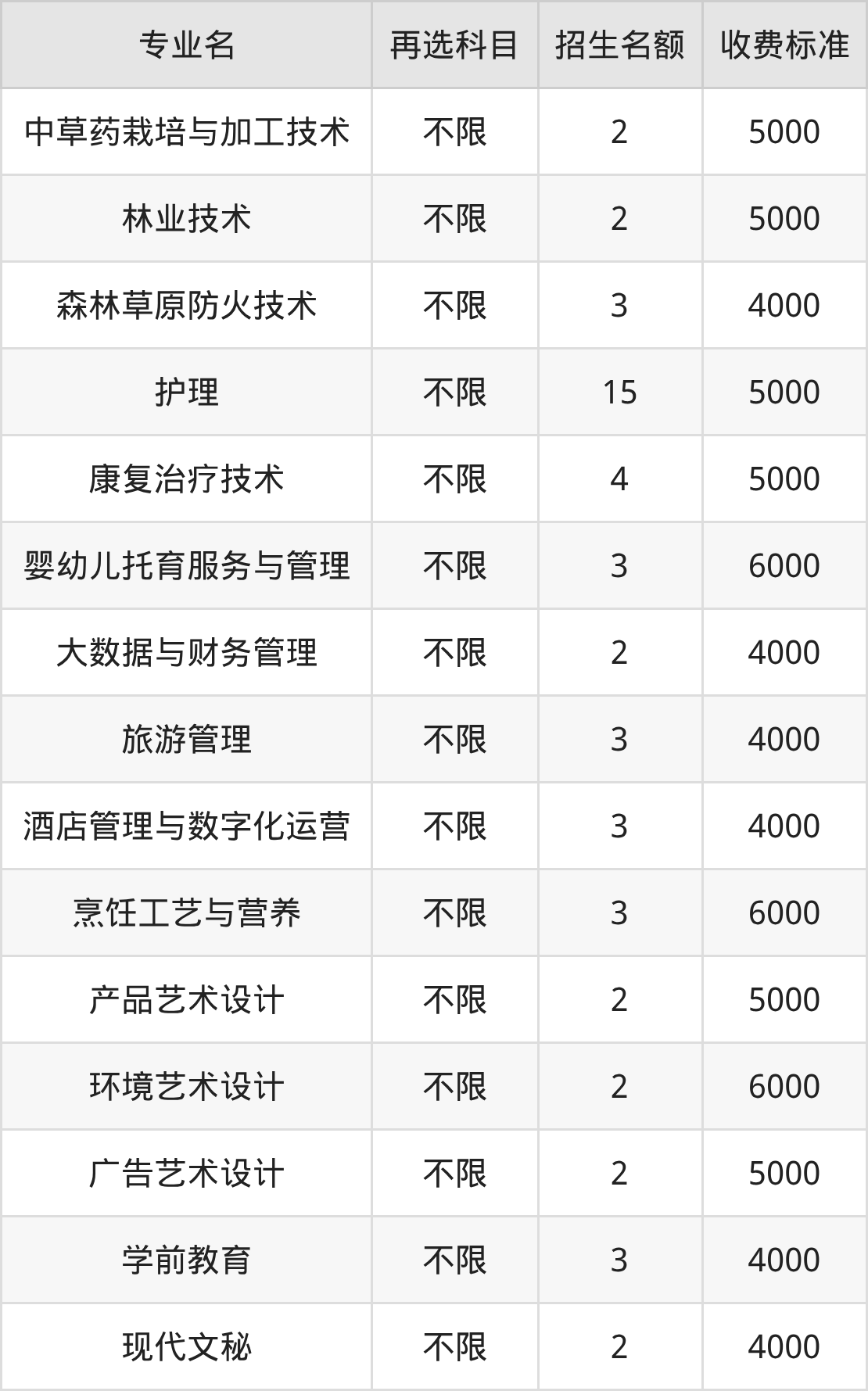 大兴安岭职业学院在历史组高职专科批招生的各个专业,每年的学费是4000元-6000元。招生人数最多的专业是护理,2025年招15人,学费是5000元。