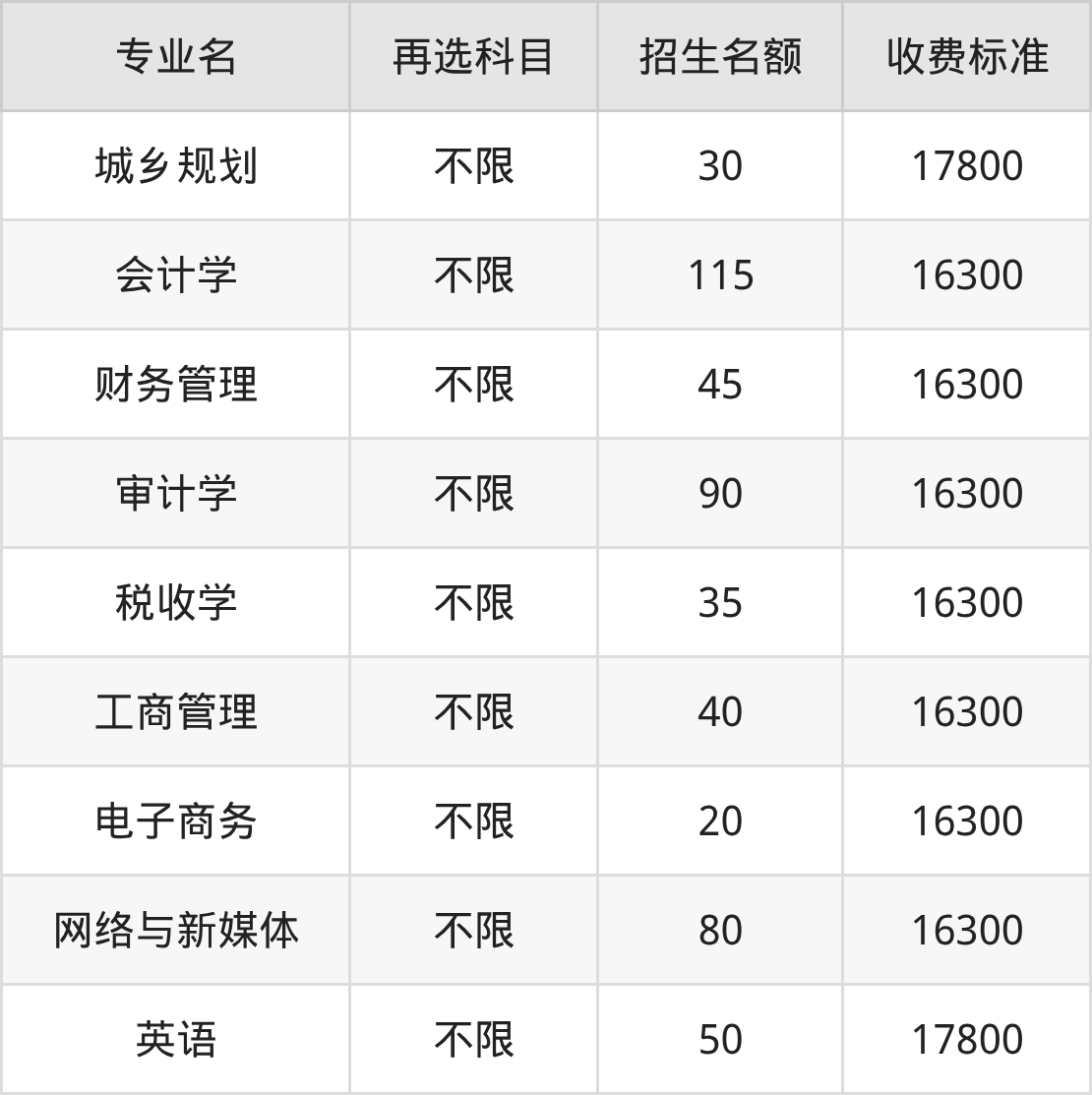 7.工商管理:学费是16300元