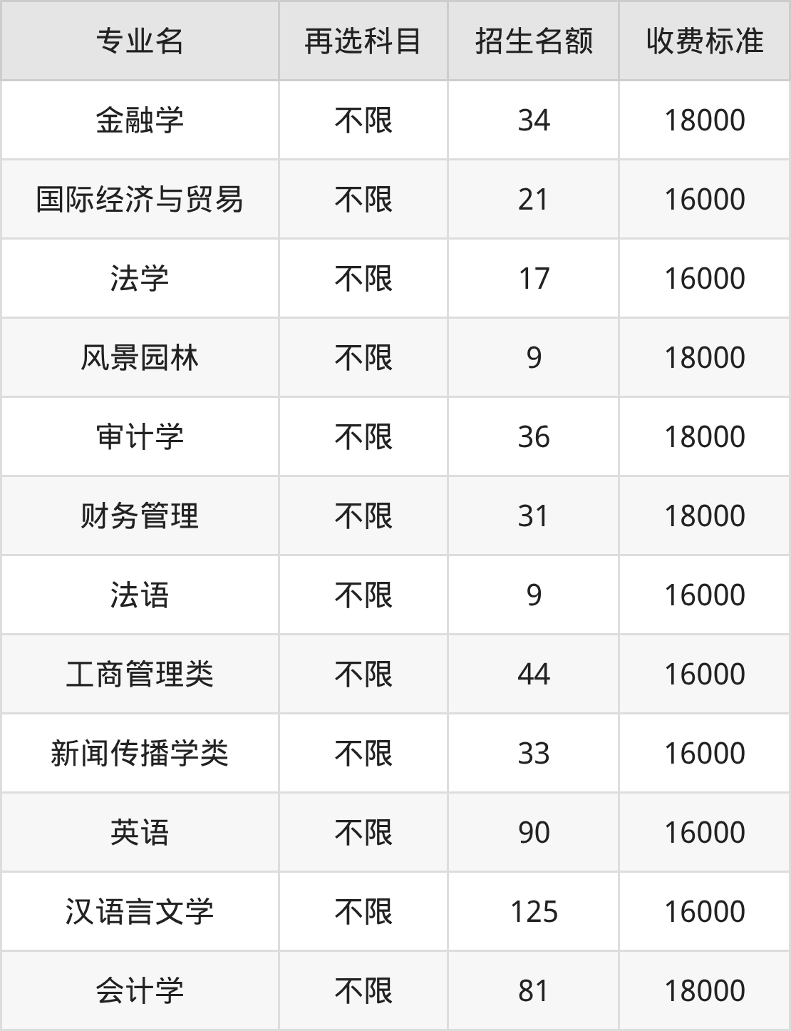 | 本科批 | 物理 | 国际经济与贸易 | 13 |